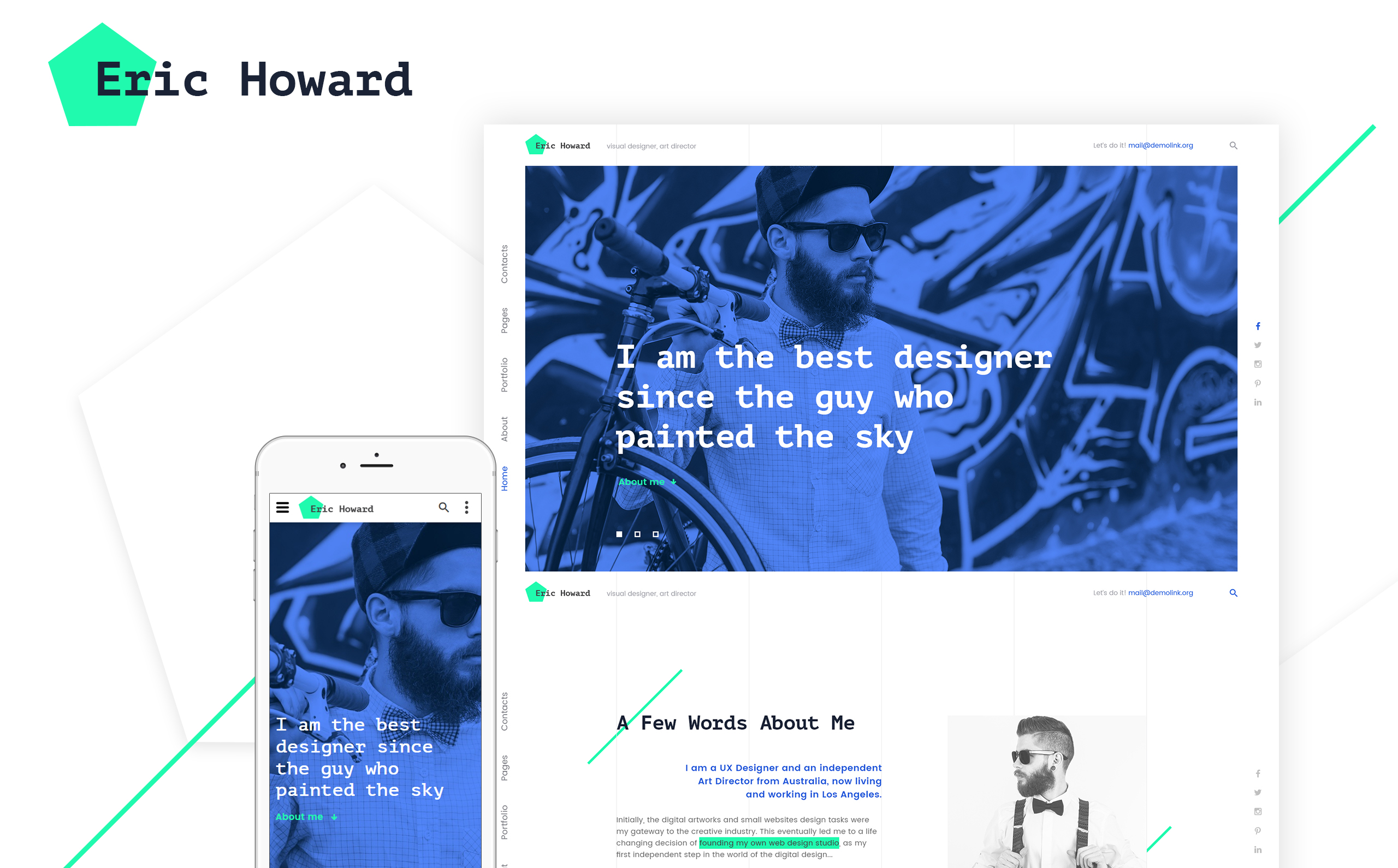 HTML5 современный шаблон - Eric Howard - Web Designer Portfolio Multipage Website Template, хорошо подойдет для сайтов Веб-дизайн.