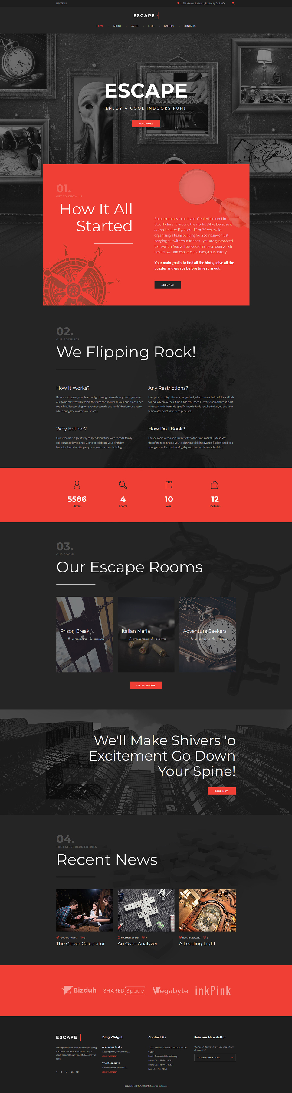 Escape - превосходно подходит для сайтов в категории Развлечения. Joomla шаблон сайта - Escape Room Joomla Template.