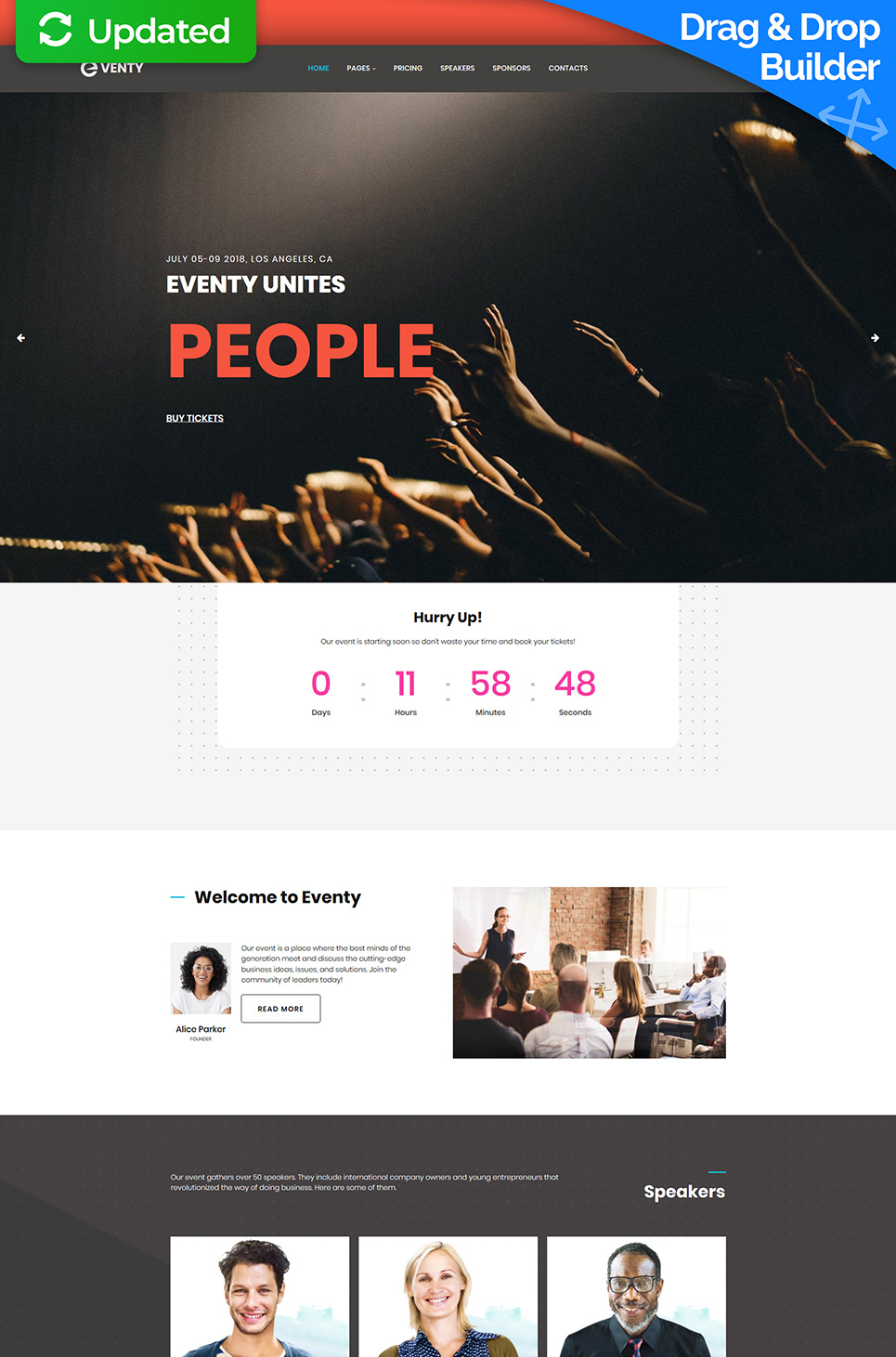 Moto CMS 3 профессиональный шаблон - Eventy - Nice Public Event Moto CMS 3 Template, превосходно подходит для сайтов в сфере Организатор событий.