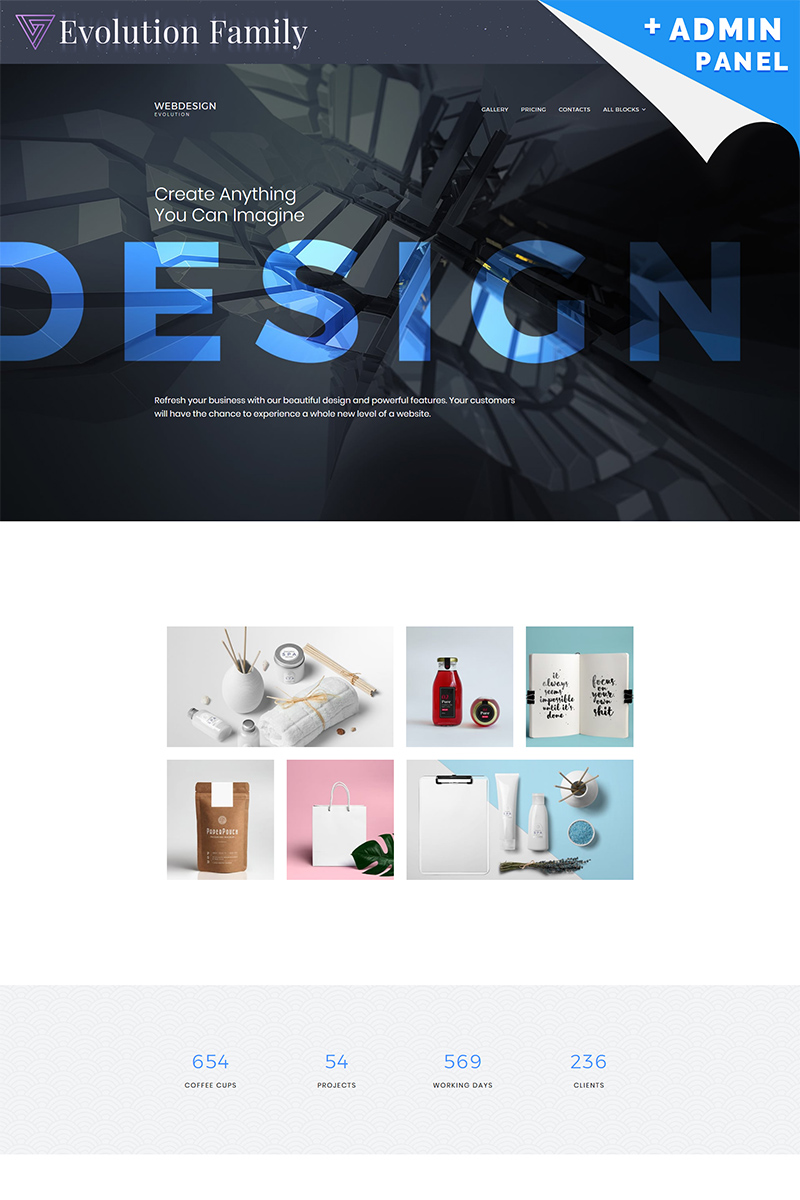 Evolution - подойдет для сайтов в категории Веб-дизайн. Лендинг шаблон посадочной страницы - Web Design MotoCMS 3 Landing Page Template.