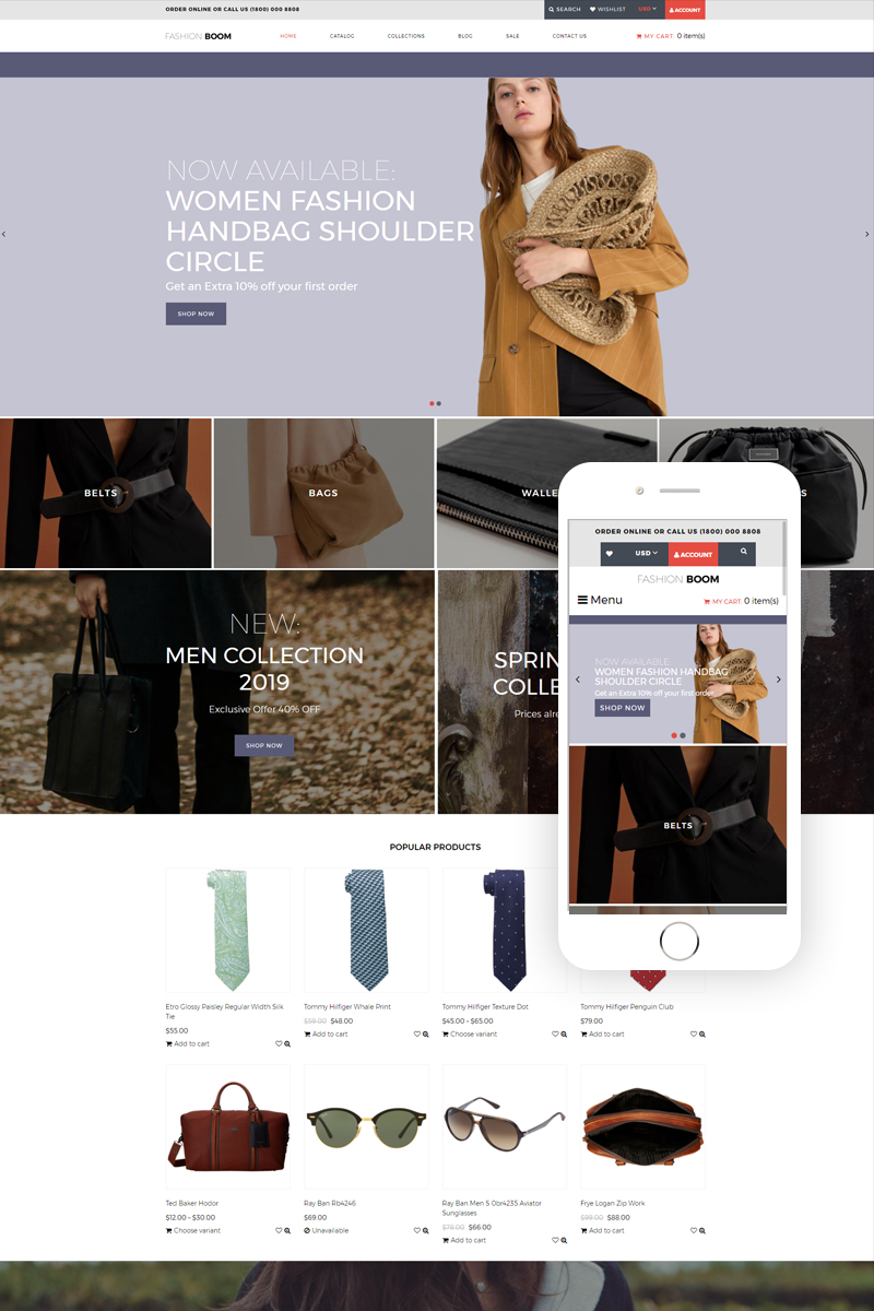 Fashion Boom - превосходно подойдет для сайтов в сфере Женская мода. Shopify шаблон для сайта интернет-магазина - Fashion Elegant Shopify Theme.