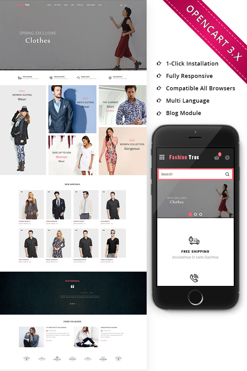 OpenCart шаблон для сайта интернет-магазина - Fashion Store - Fashion True Store Responsive OpenCart Template, превосходно подойдет для сайтов в области Модный магазин.
