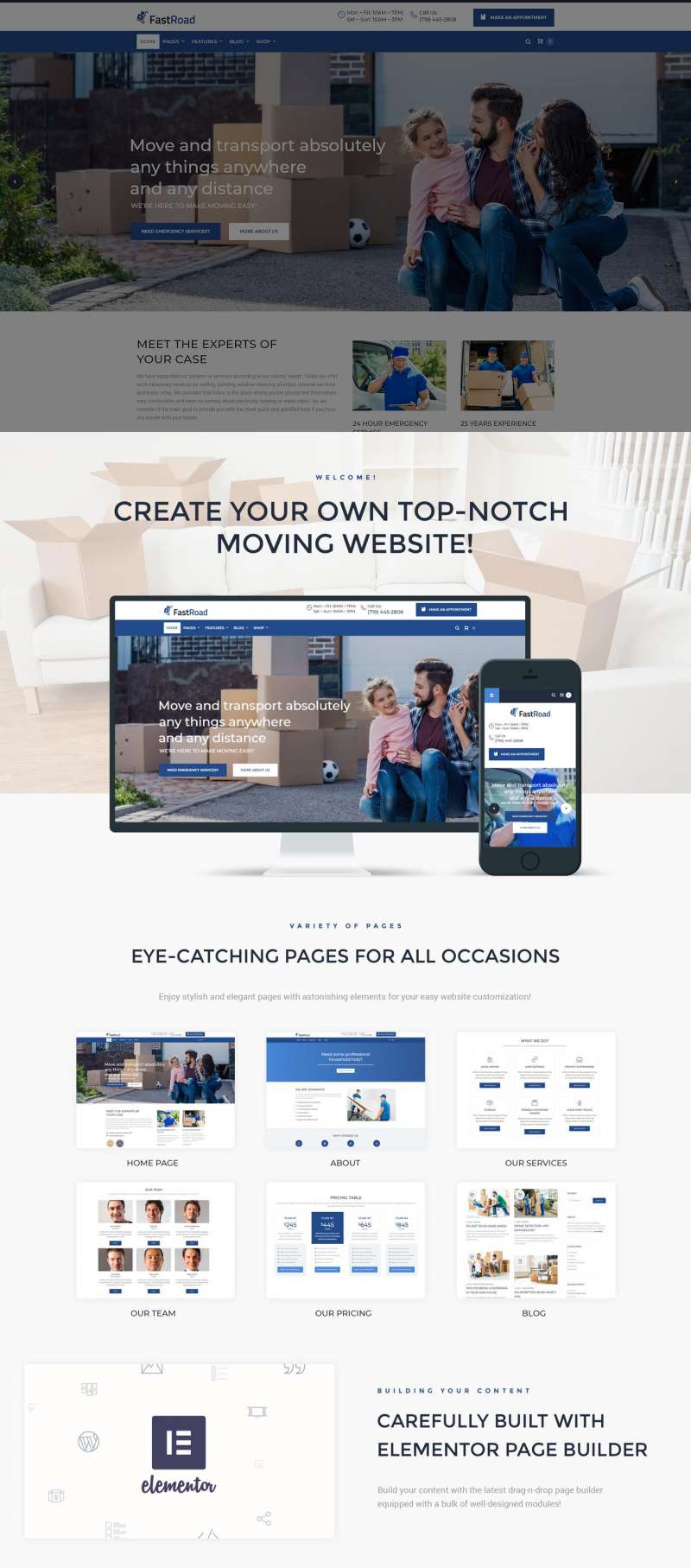 FastRoad - превосходно подходит для сайтов в категории Грузоперевозка. WordPress отличный шаблон - Moving Company Responsive WordPress Elementor Theme.