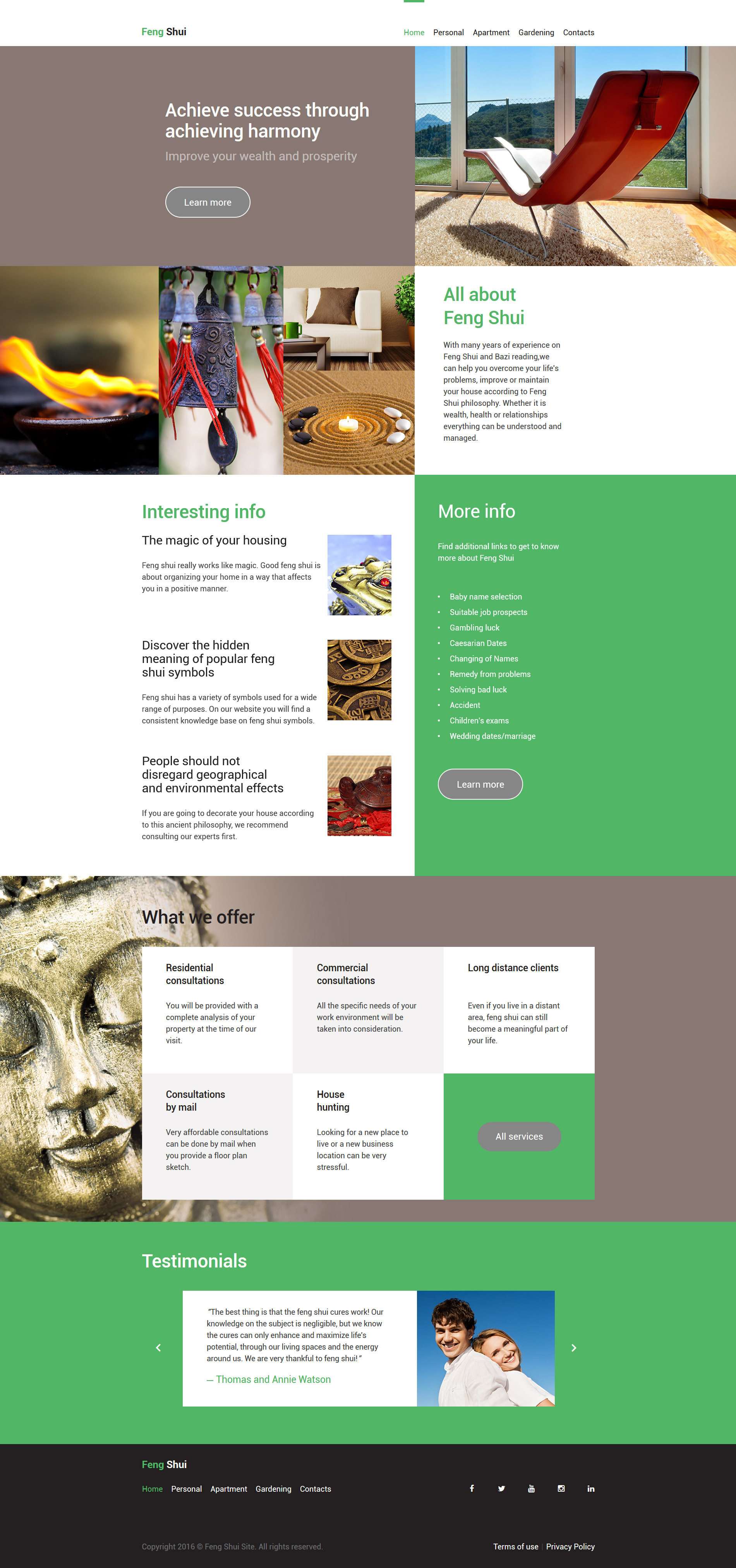 Feng Shui - превосходно подойдет для сайтов в категории Фэншуй. HTML5 мультишаблон - Feng Shui Website Template.