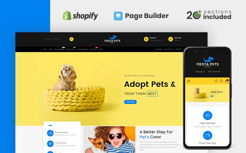 Dog - подойдет для сайтов Собаки. Shopify интернет-магазин - Fiesta Pets Store Shopify Theme.