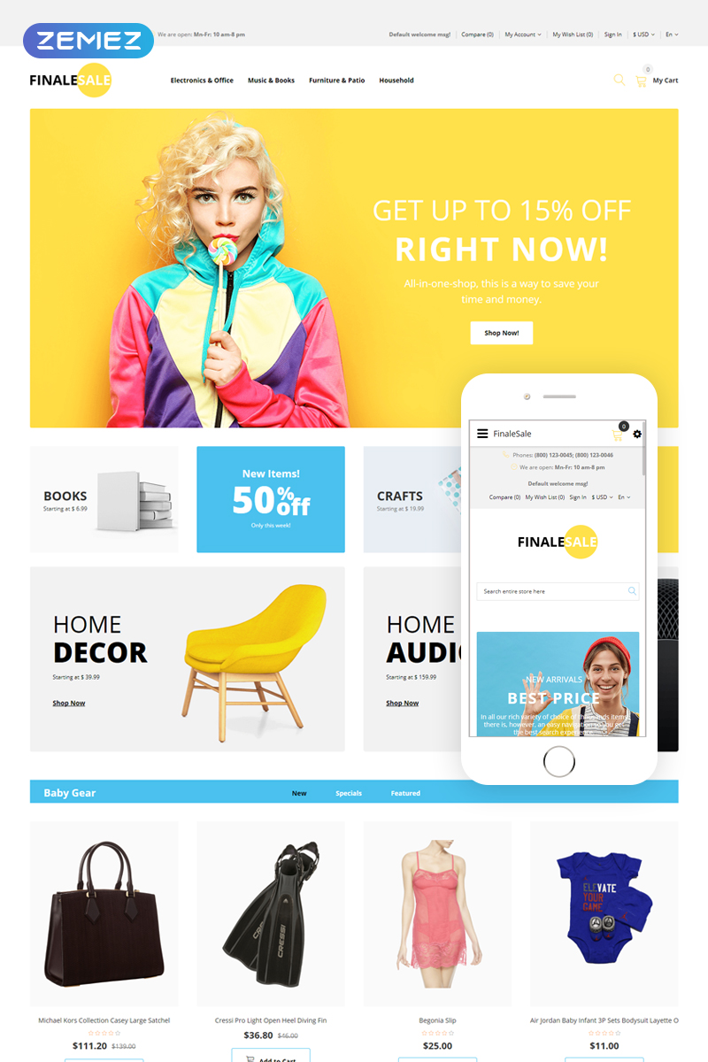 FinalSale - идеально подходит для сайтов в области Оптовый магазин. OpenCart шаблон для интернет-магазина - Wholesale Multicurrency Simple OpenCart Template.