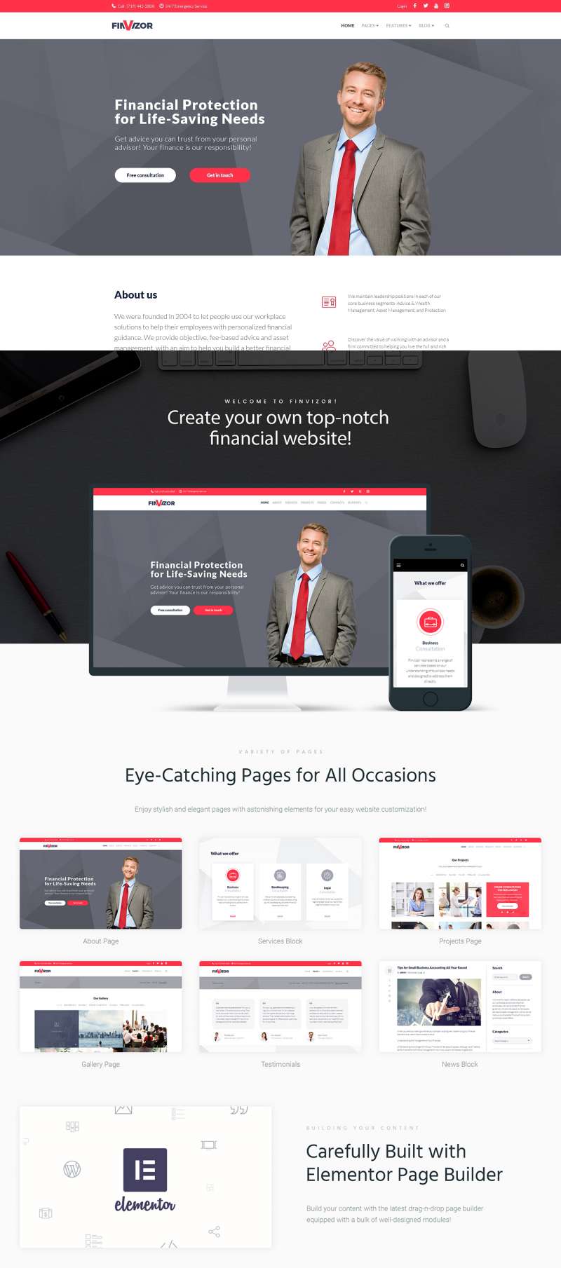 Consulting - подходит для сайтов на тему Консалтинг. WordPress приятный шаблон - FinVisor Business Consultant WordPress Theme.