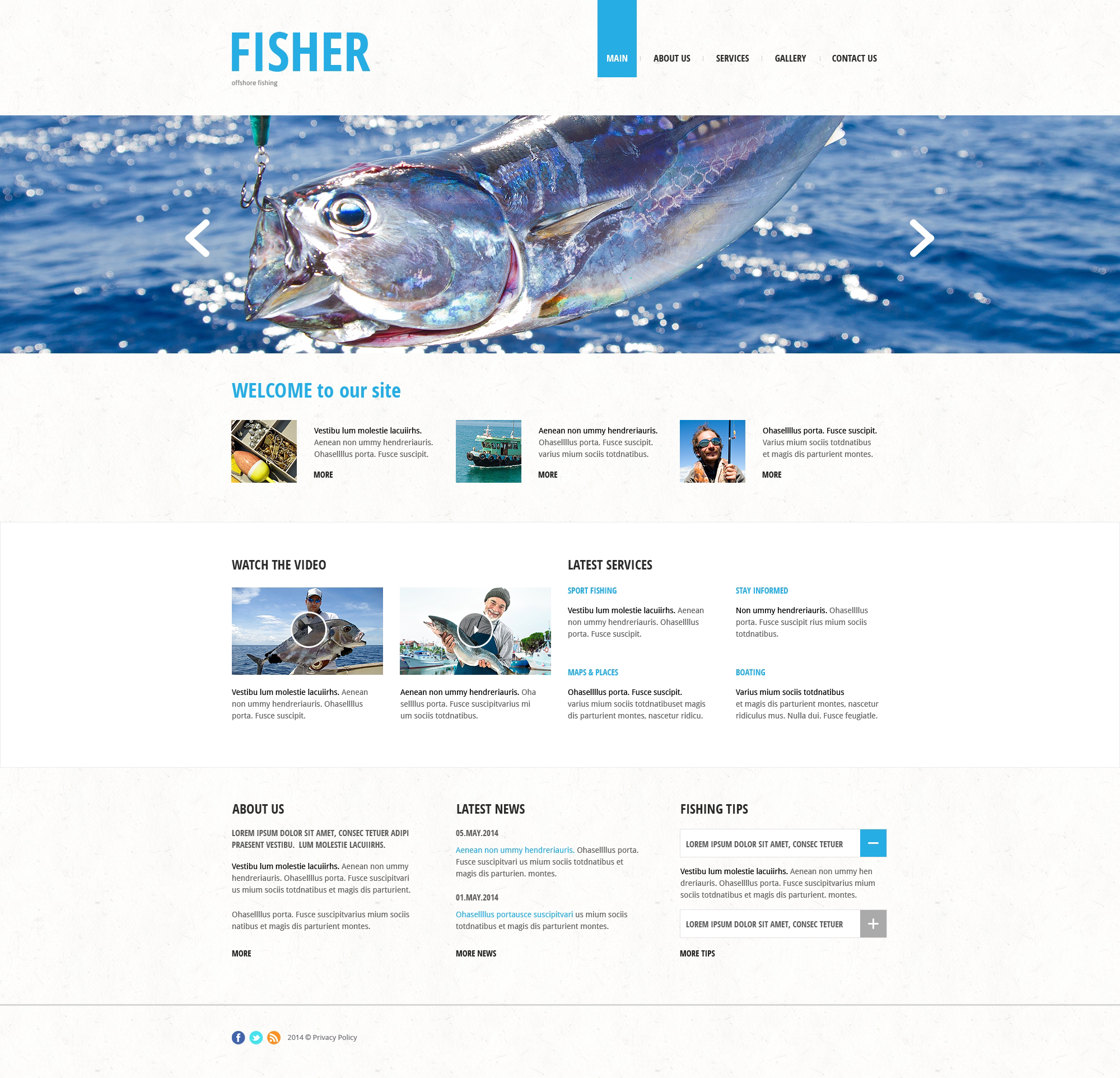 Fishing - отлично подойдет для сайтов в категории Рыбалка. HTML5 современный шаблон - Fishing Responsive Website Template.