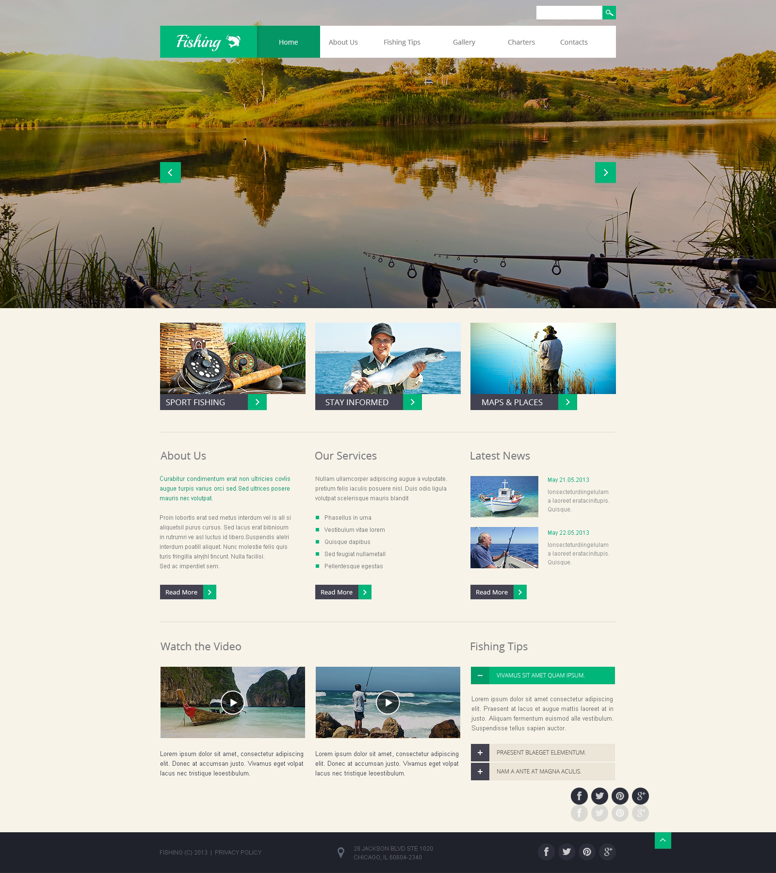 HTML5 профессиональный шаблон - Fishing - Fishing Responsive Website Template, хорошо подойдет для сайтов в области Рыбалка.