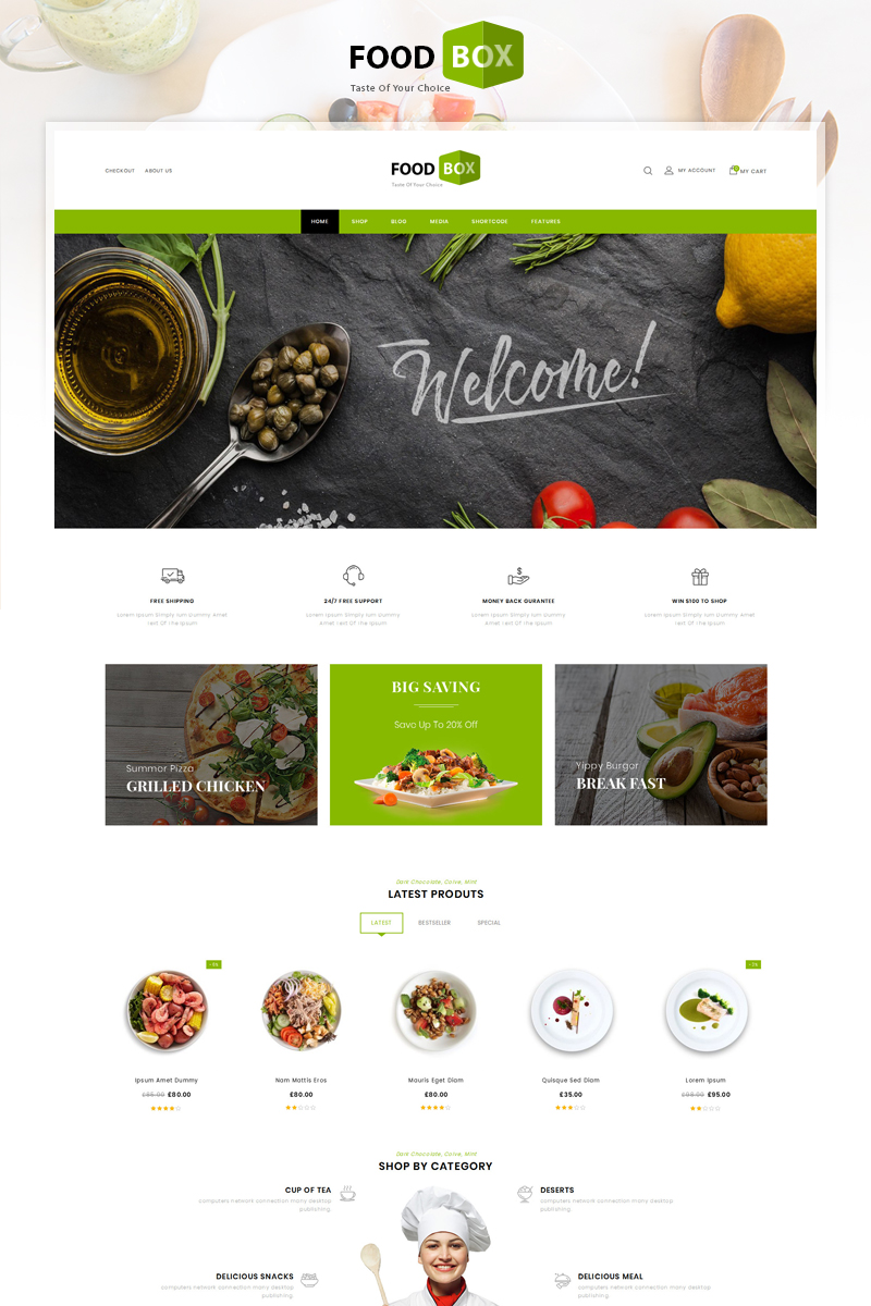 Скриншот - Ресторан магазин woocommerce тема - Food Box - WooCommerce шаблон онлайн-магазина Wordpress