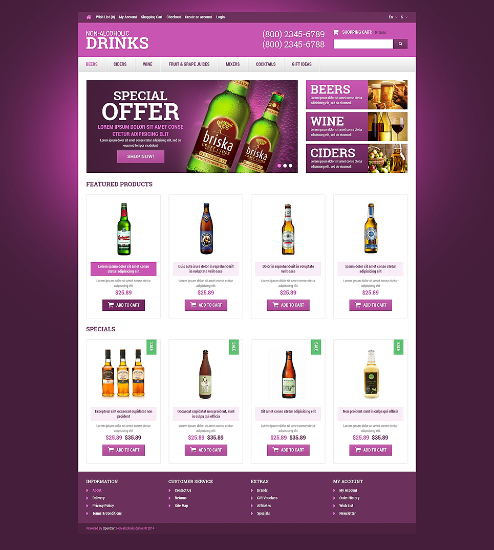 OpenCart интернет-магазин для сайта - Food & Drink - Food & Drink Responsive OpenCart Template, специально для сайтов на тему Напитки и еда.