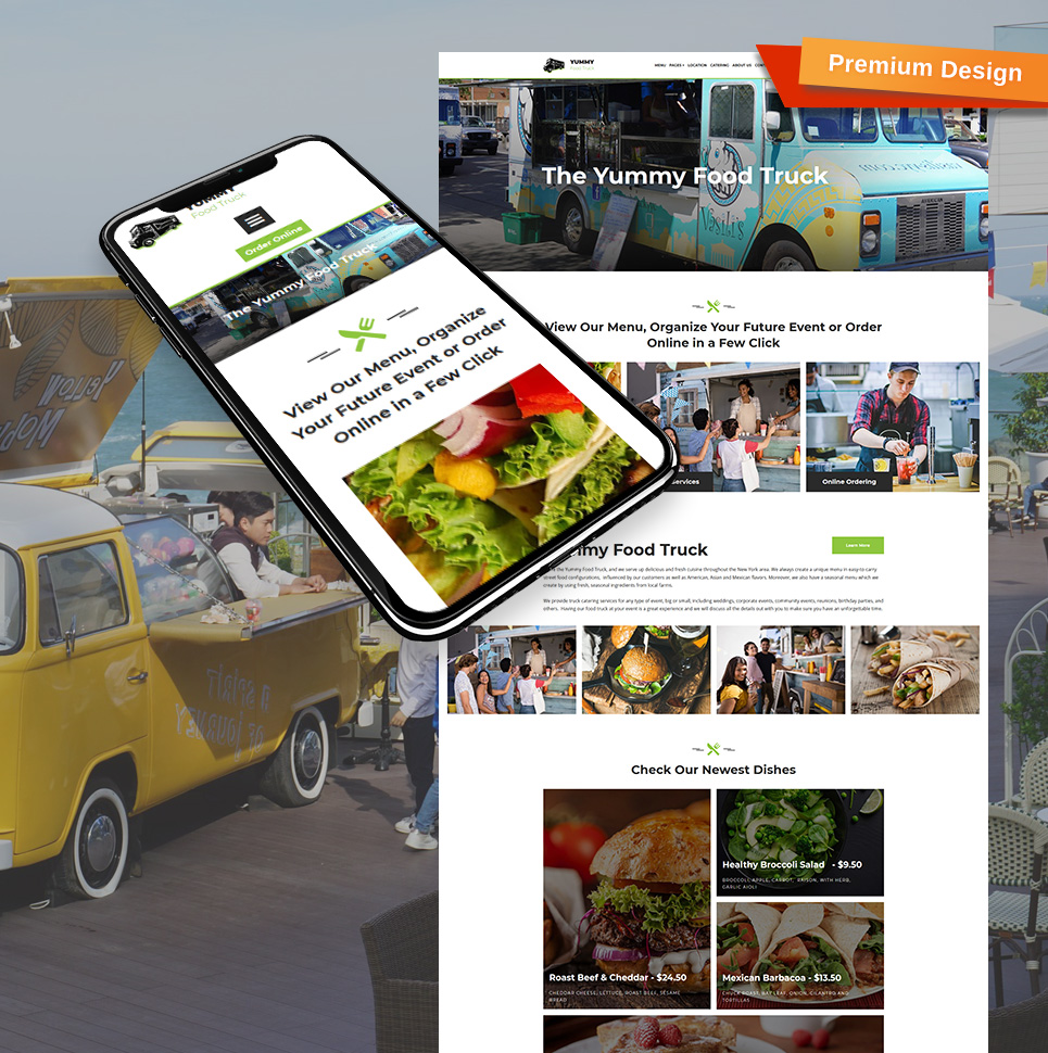 Moto CMS 3 адаптивный шаблон - Food & Drink - Food Truck Moto CMS 3 Template, хорошо подойдет для сайтов в сфере Напитки и еда.