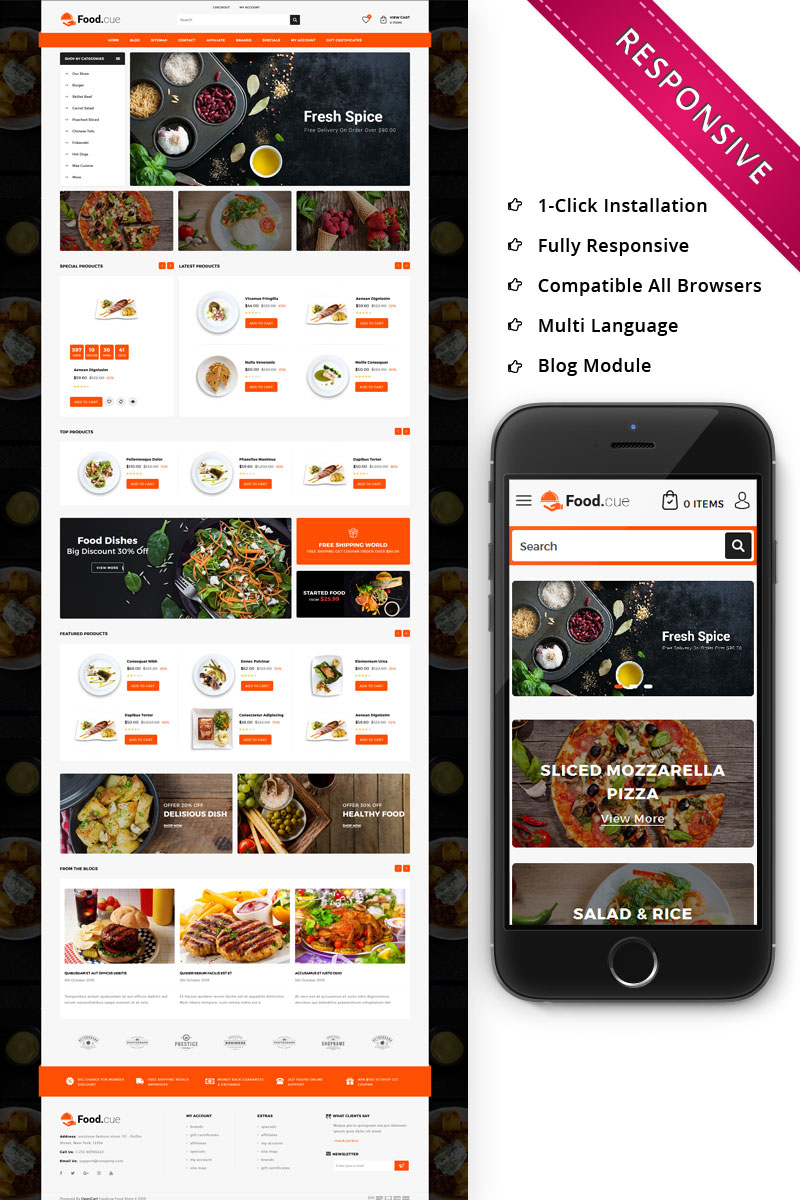 Скриншот - Отзывчивый шаблон opencart магазина быстрого питания - Foodcue - OpenCart шаблон для интернет-магазина