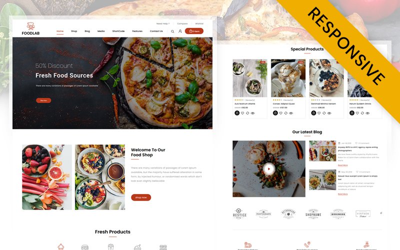 FoodLab - хорошо подходит для сайтов в области Продуктовый магазин. WooCommerce шаблон интернет-магазина Wordpress - Restaurant Food Store WooCommerce Theme.