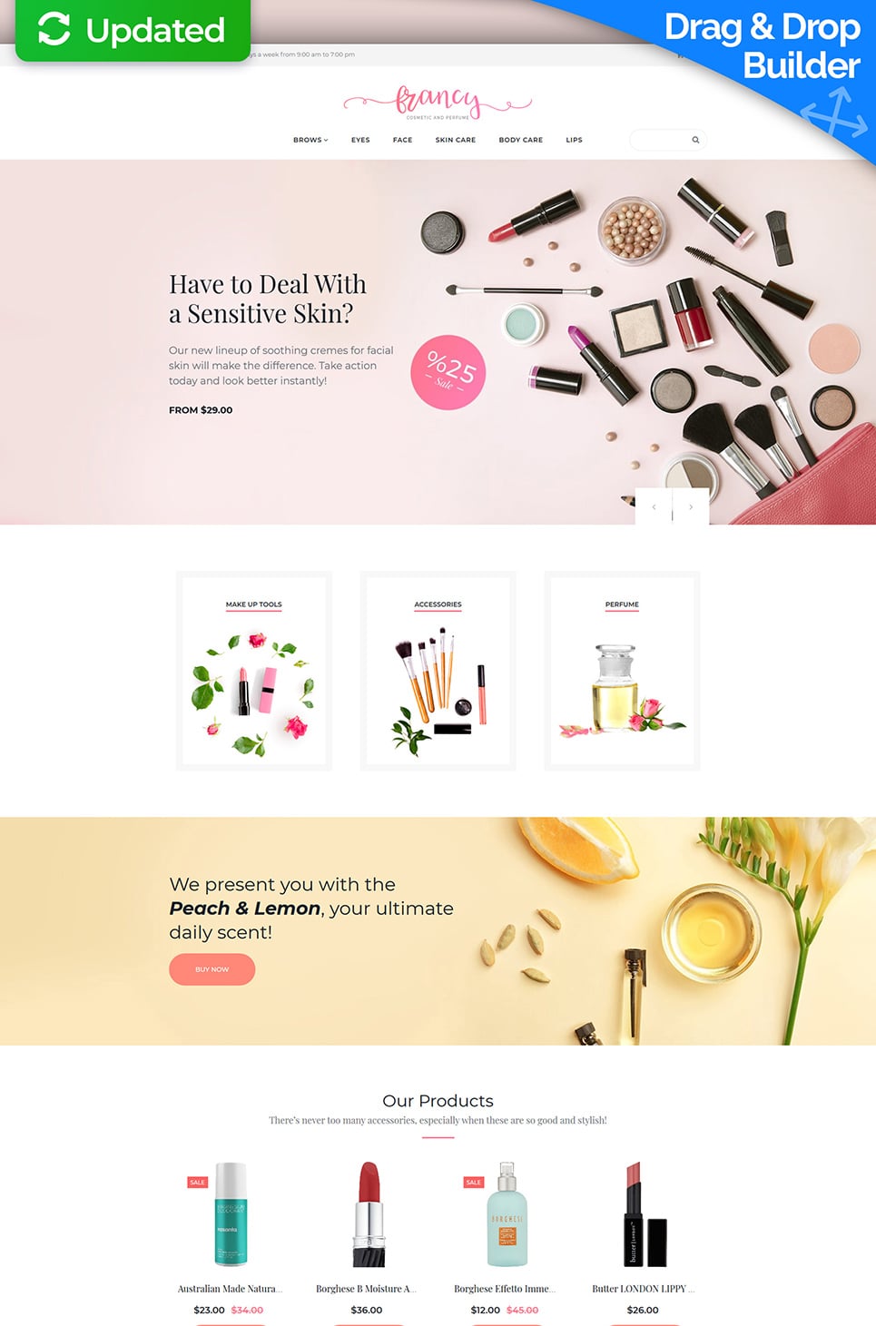 Francy - идеально подойдет для сайтов в категории Магазин косметики. MotoCMS Ecommerce интернет-магазин - Cosmetics Store MotoCMS Ecommerce Template.