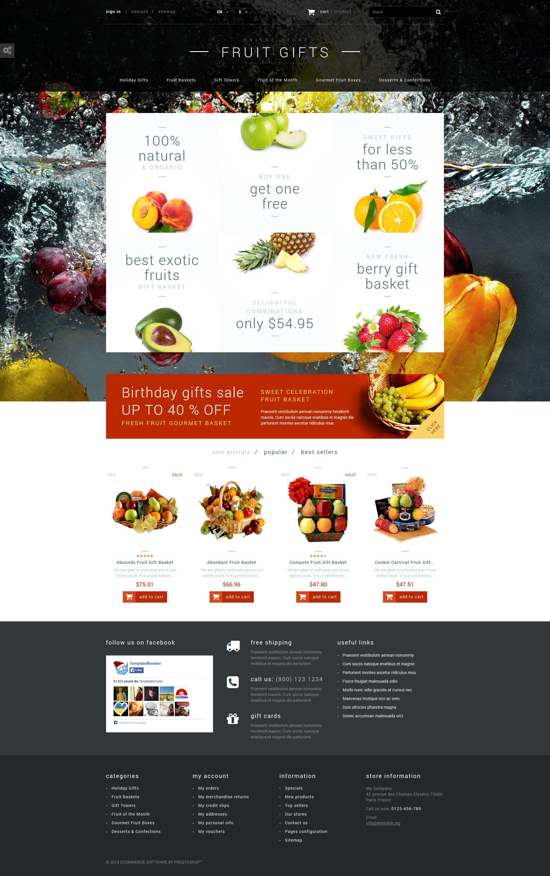 Фруктовые подарки магазин prestashop тема - Gifts Store - PrestaShop шаблон для сайта интернет-магазина