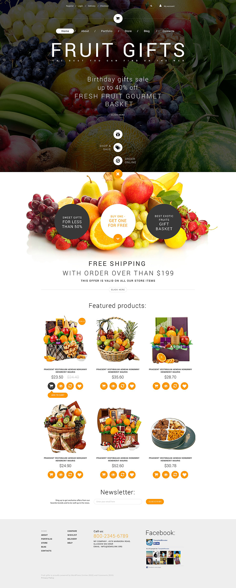Gifts Store - идеально подходит для сайтов Магазин подарков. WooCommerce интернет-магазин Wordpress - Fruit Gifts WooCommerce Theme.