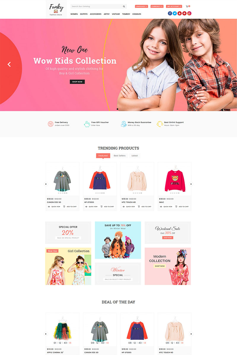 фанки модный магазин opencart шаблон
