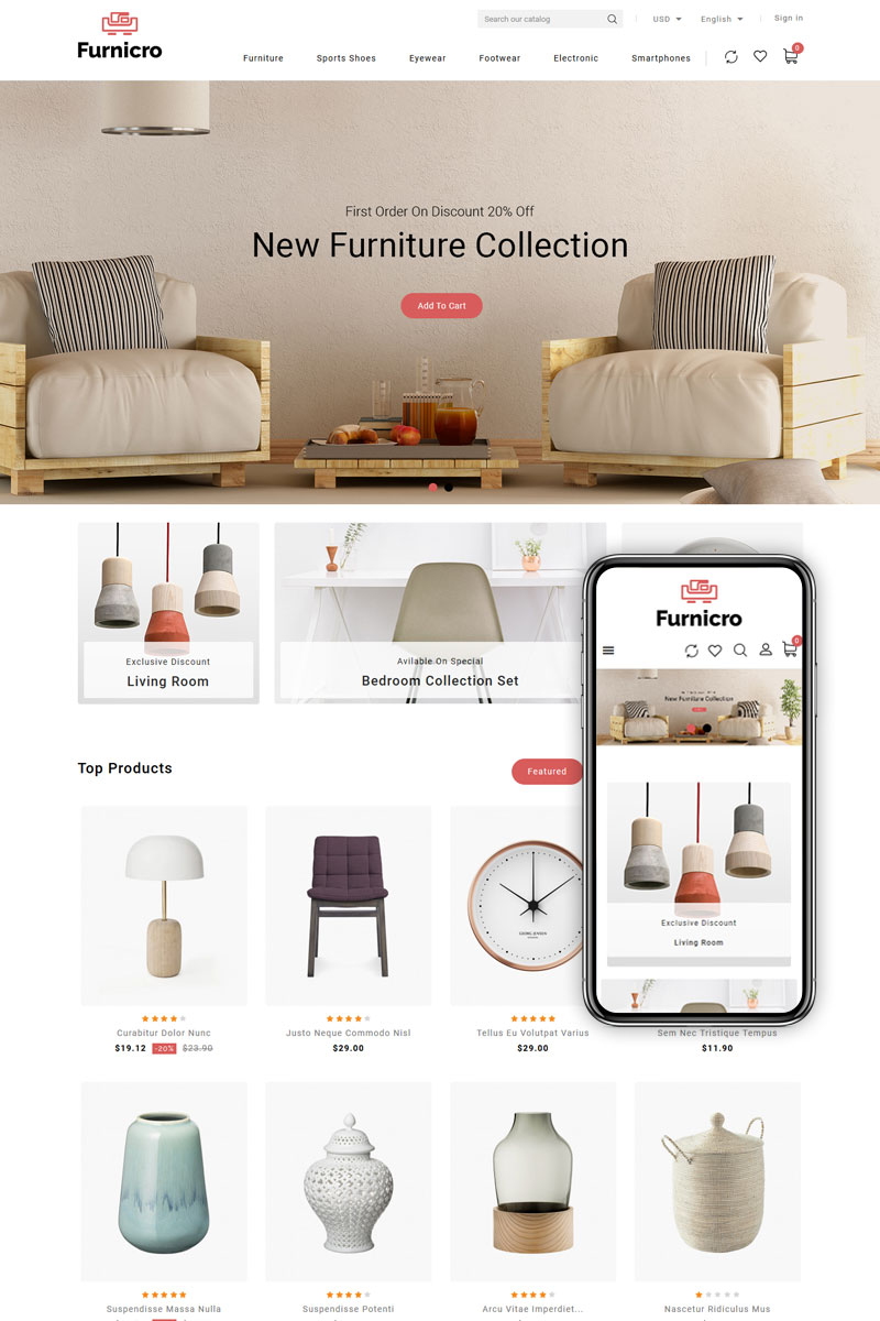PrestaShop шаблон интернет-магазина - Furnicro - Furniture Shop PrestaShop Theme, идеально подойдет для сайтов на тему Электроника.