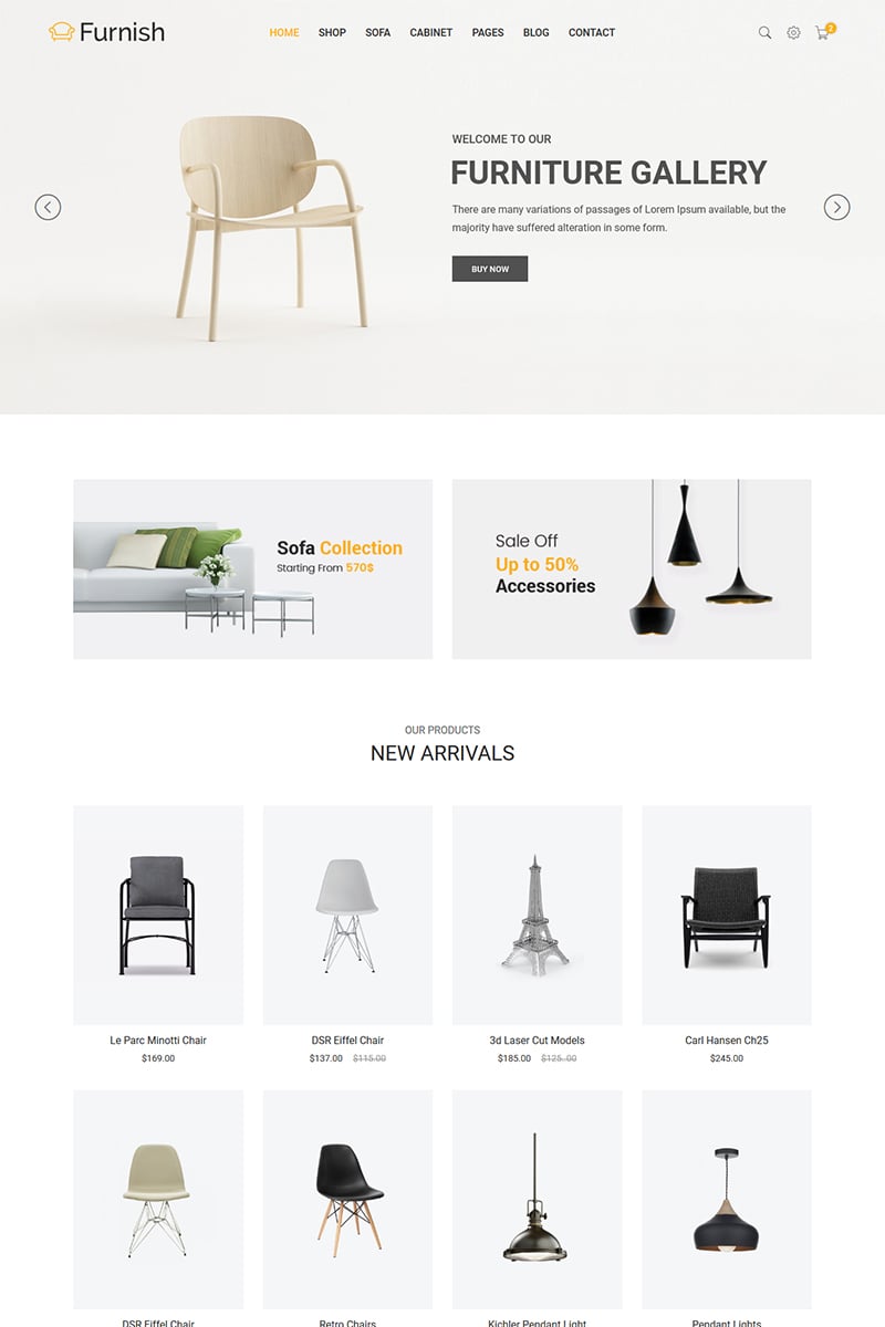 Furnish - специально для сайтов Мебель. HTML5 шаблон - Minimalist Furniture Website Template.