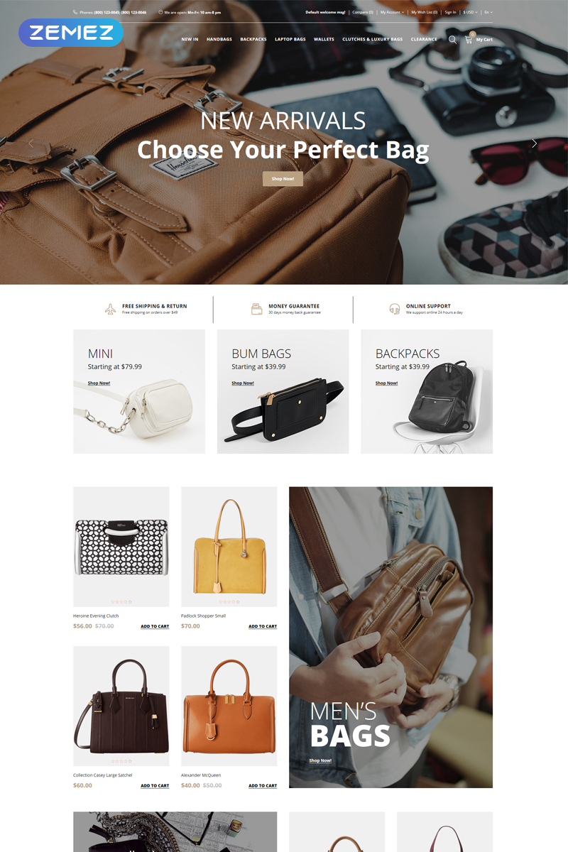 OpenCart интернет-магазин для сайта - G. Bags - Handbag Clean OpenCart Template, отлично подойдет для сайтов на тему Модный магазин.