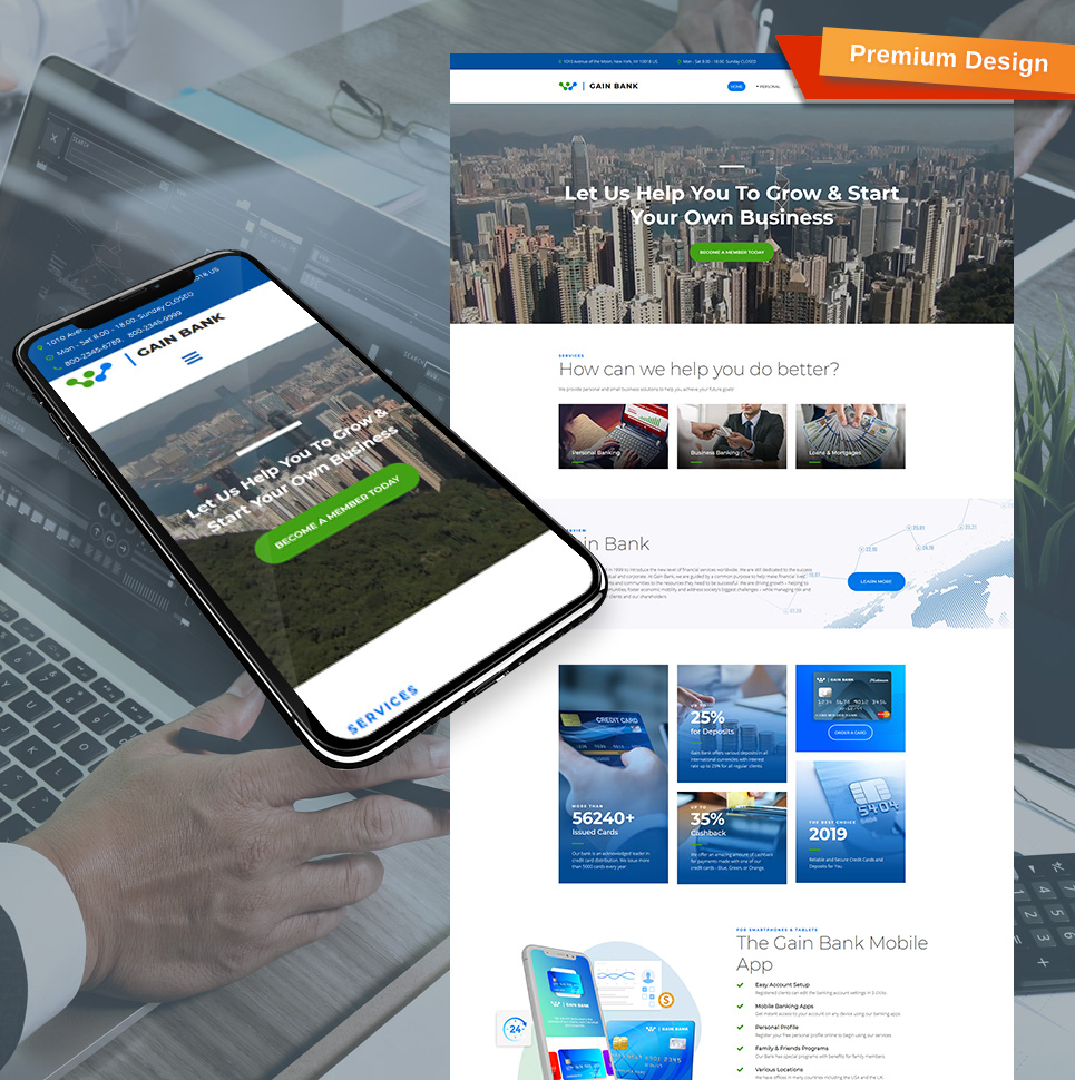 Moto CMS 3 адаптивный шаблон - Gain - Best Bank Moto CMS 3 Template, идеально подойдет для сайтов в сфере Банк.