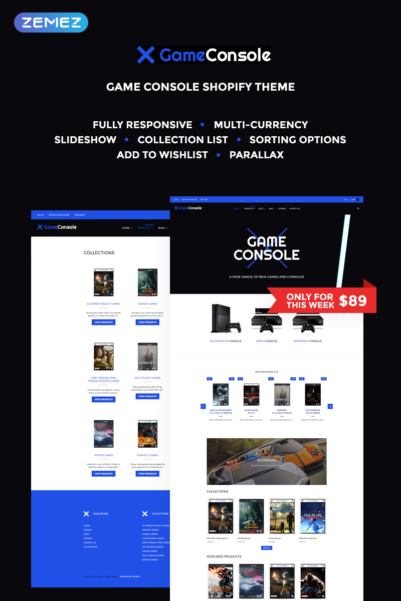 Shopify шаблон для интернет-магазина - Game Console - Bright Gaming Shopify Theme, подходит для сайтов на тему Игровой сайт.
