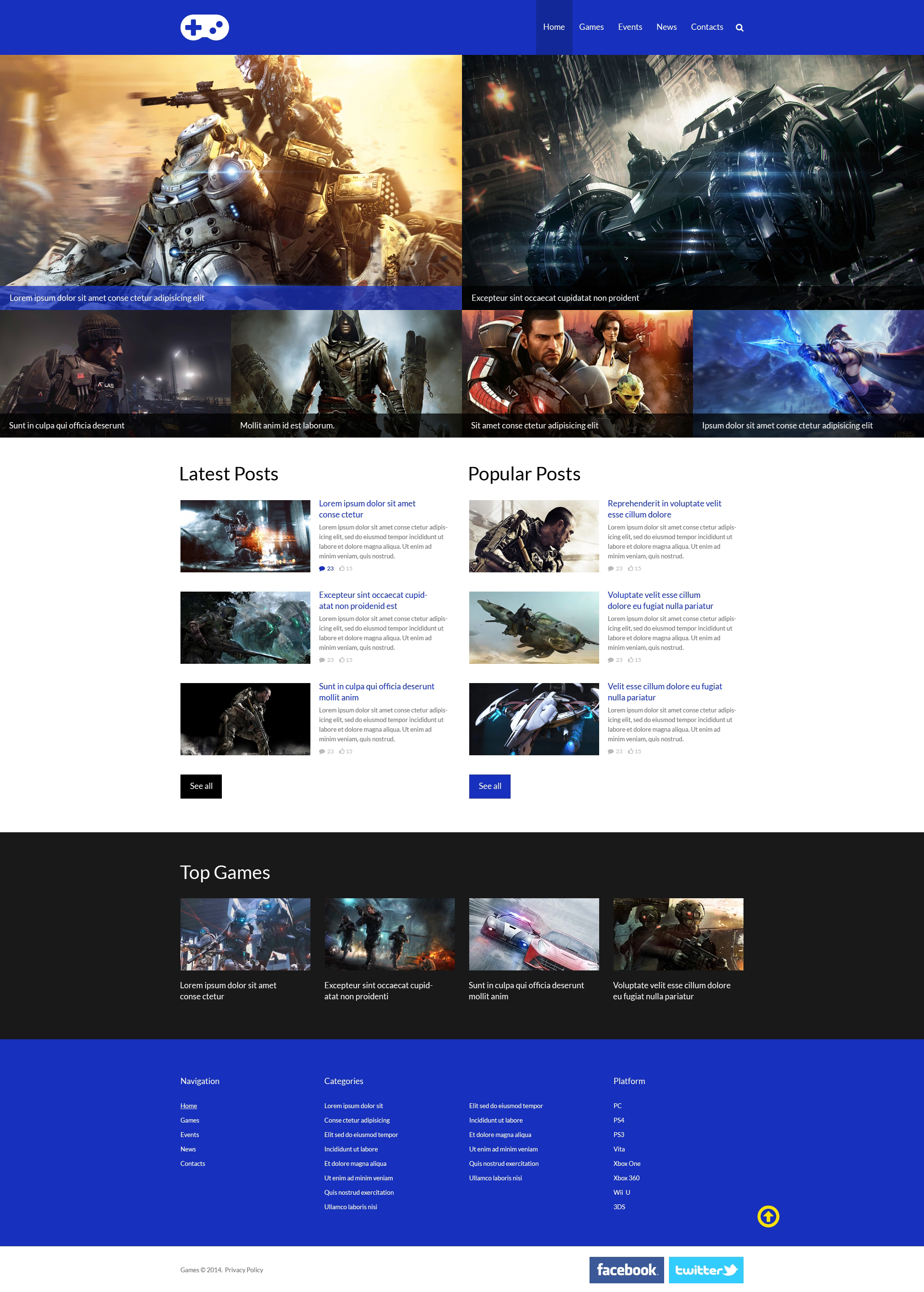 Адаптивный шаблон сайта игрового портала - Game Portal - HTML5 мультишаблон