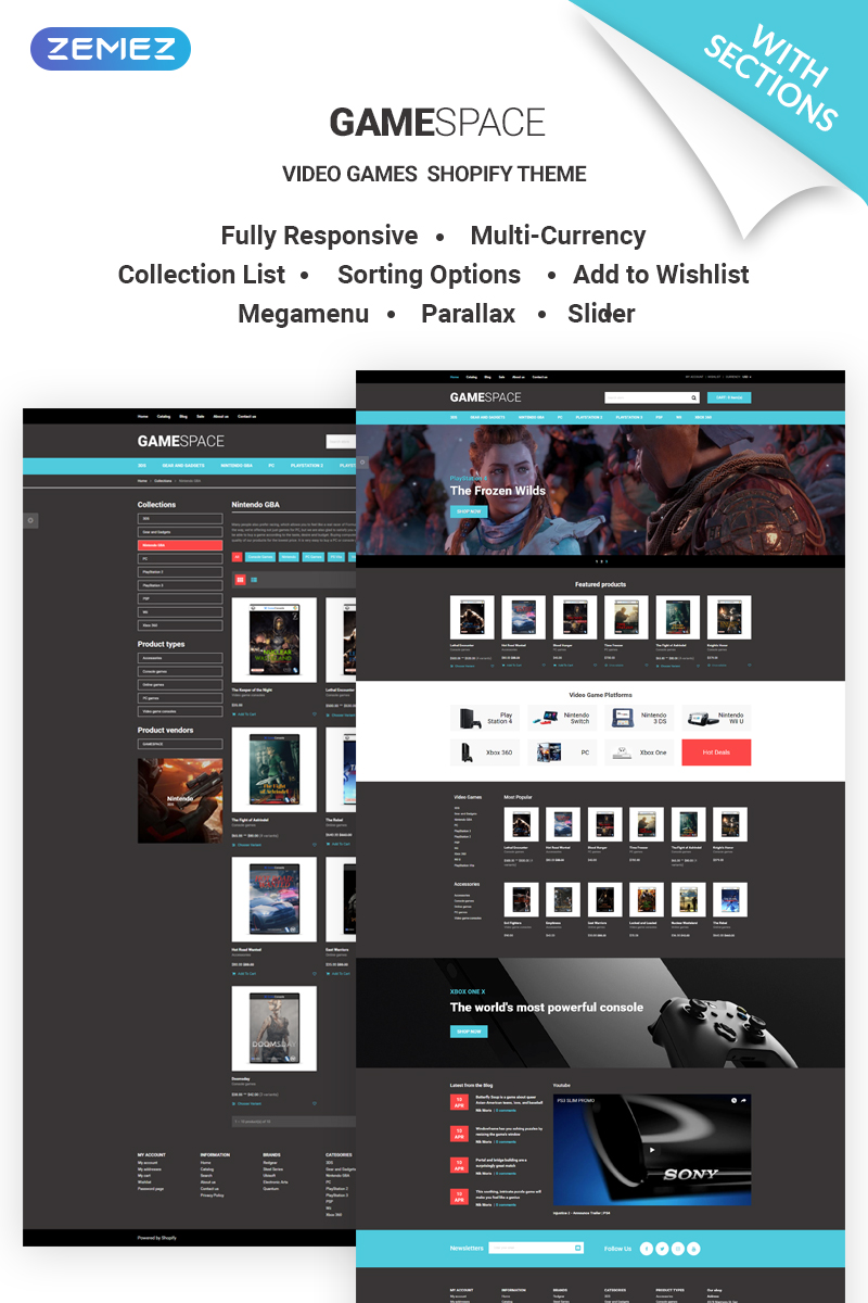 Shopify шаблон для сайта интернет-магазина - Game Space - Cool Video Games Store Shopify Theme, отлично подойдет для сайтов в категории Игровой сайт.