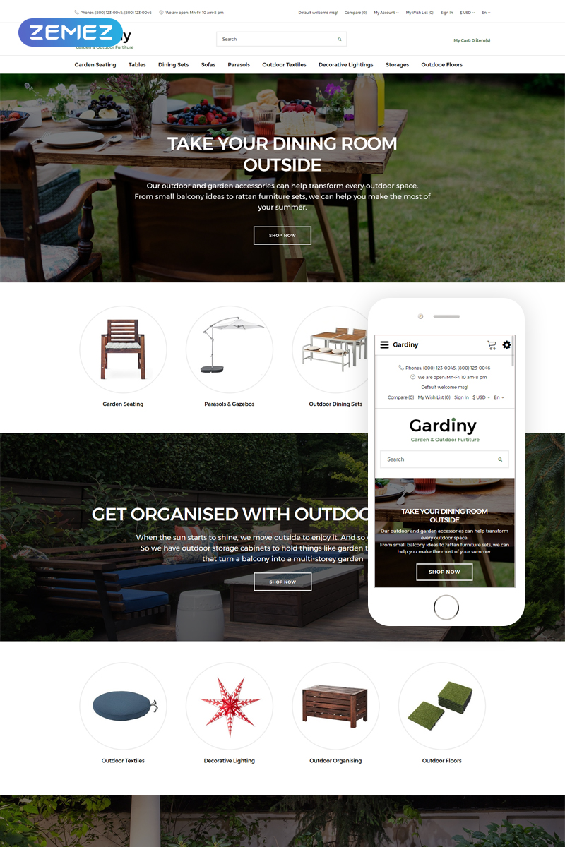 OpenCart шаблон интернет-магазина - Gardiny - Furniture Parallax Elegant OpenCart Template, отлично подходит для сайтов Мебель.