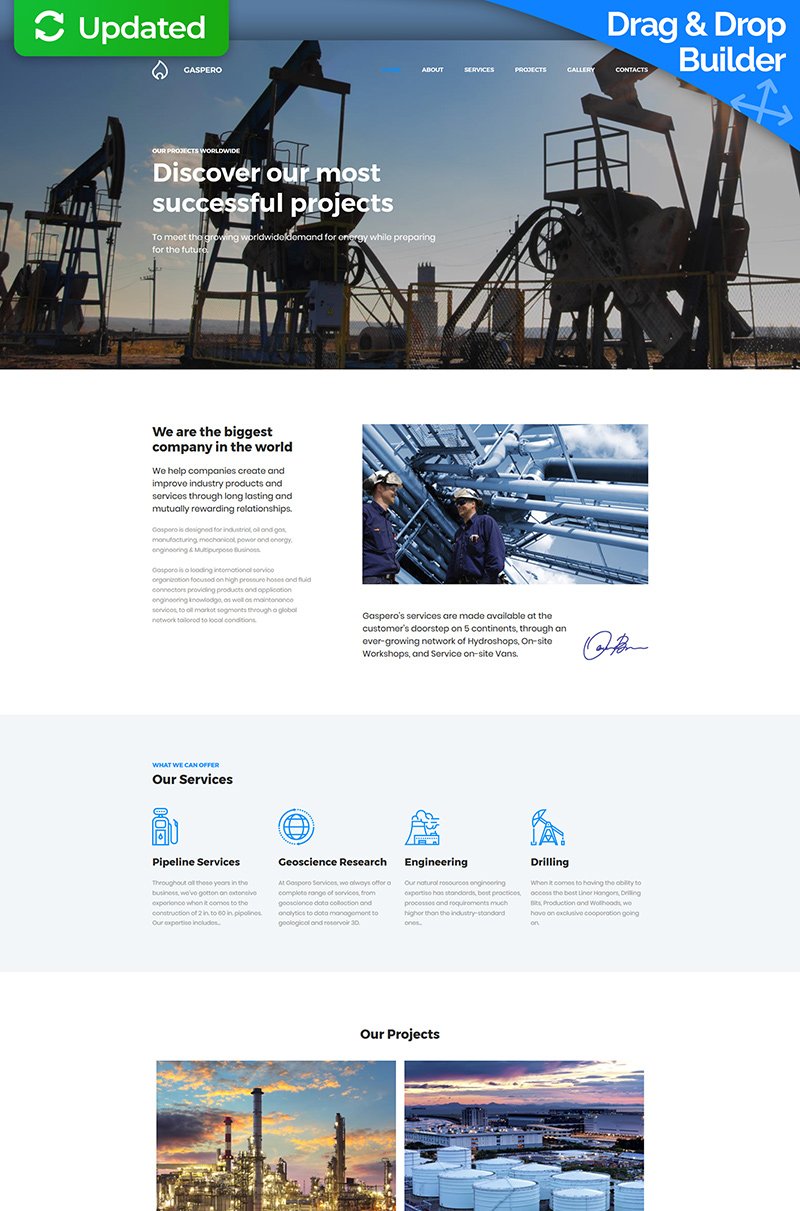 Moto CMS 3 функциональный шаблон - Gaspero - Oil & Gas Company Premium Moto CMS 3 Template, подойдет для сайтов в области Заправка.