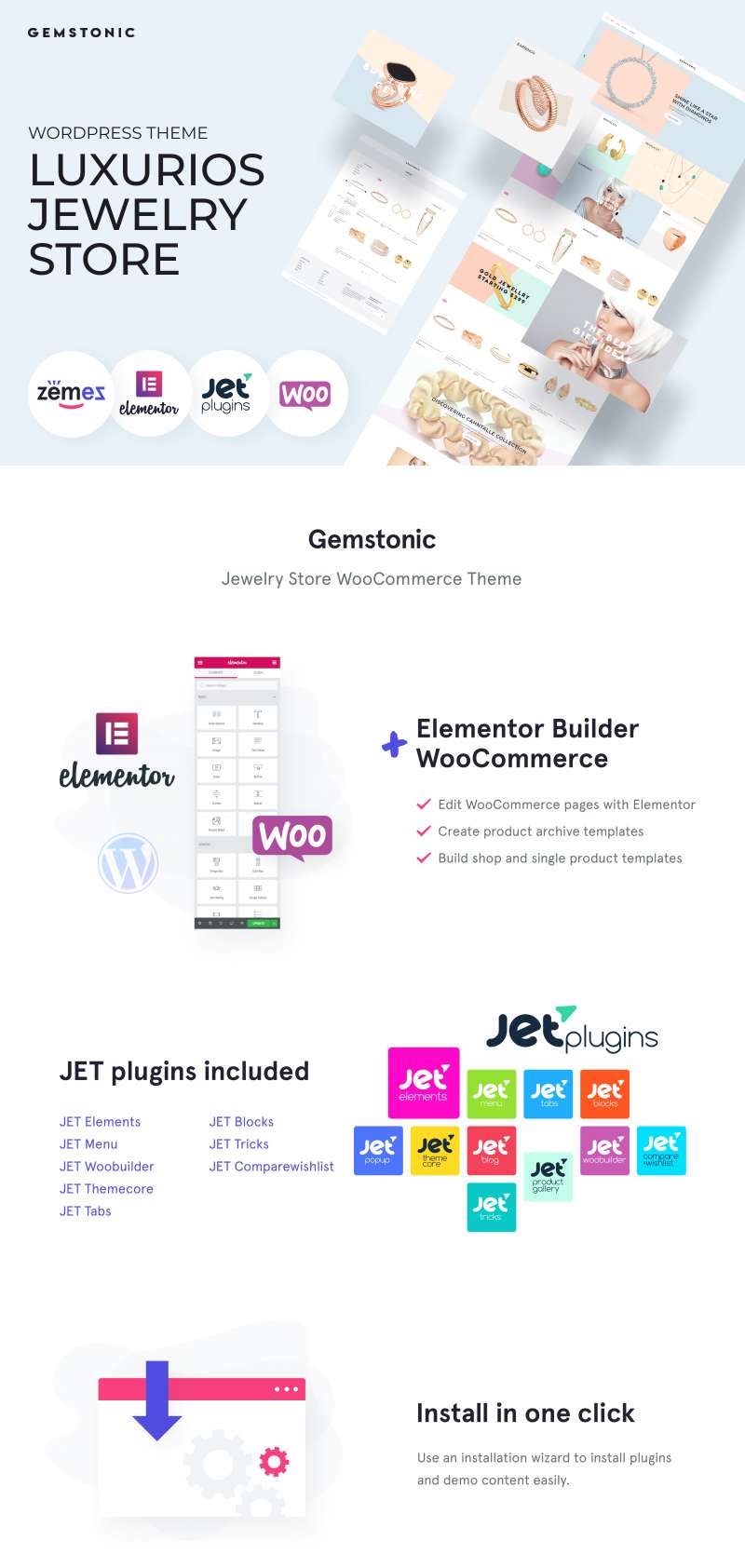 WooCommerce шаблон магазина для сайта WordPress - Gemstonic - Jewelry Elementor WooCommerce Theme, превосходно подходит для сайтов в области Магазин косметики.