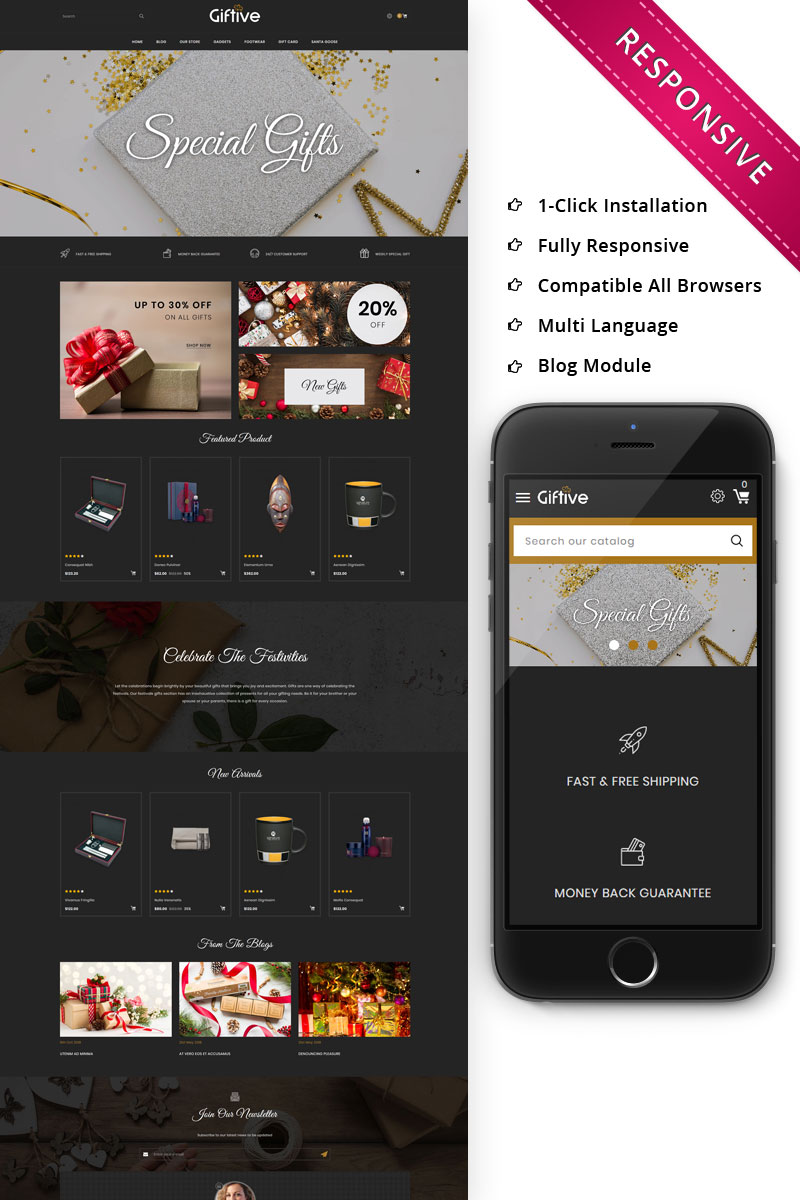 Отзывчивый шаблон opencart для магазина подарков - Giftive - OpenCart шаблон интернет-магазина