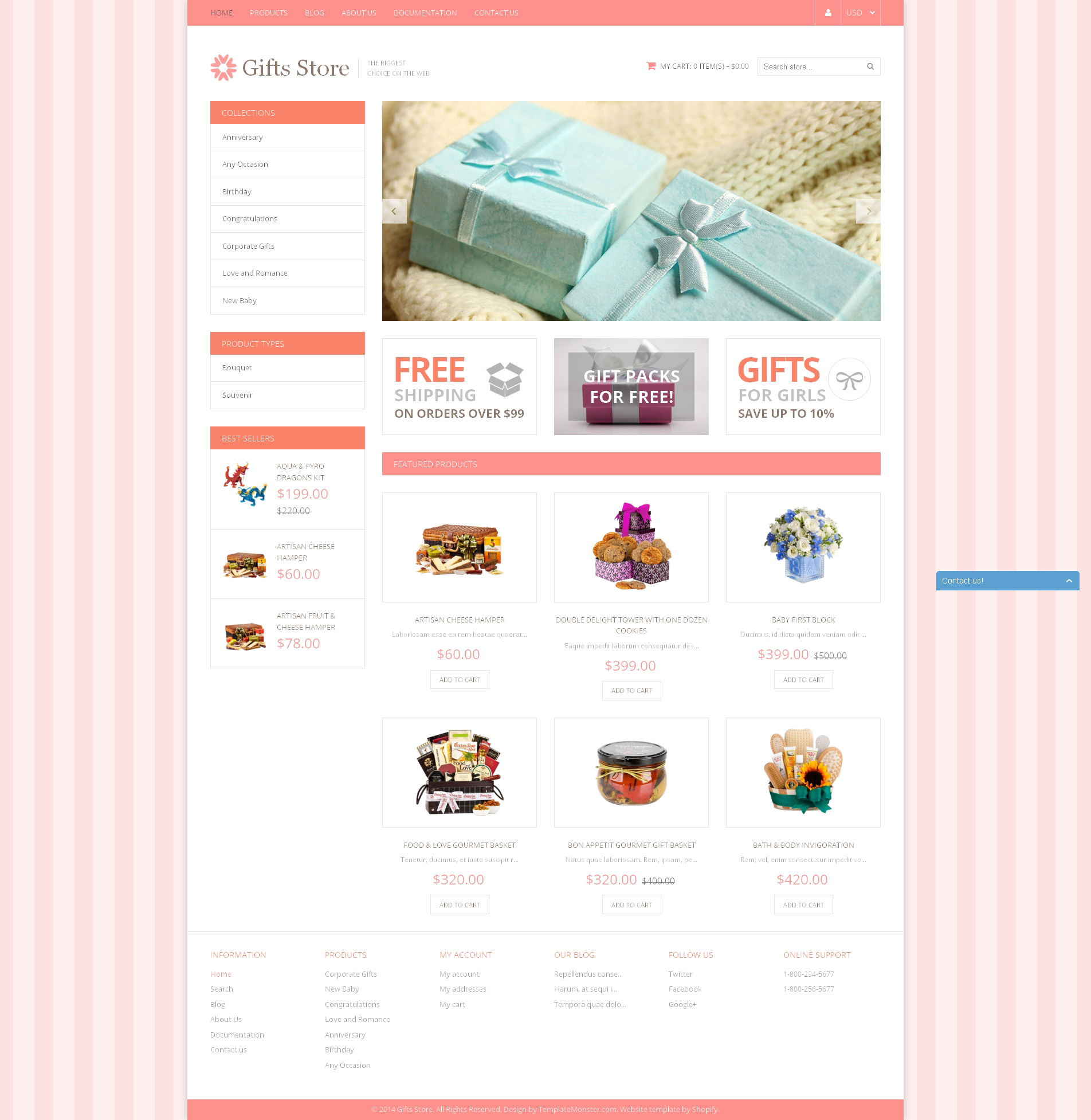 Gifts Store - идеально подходит для сайтов на тему Магазин подарков. Shopify шаблон интернет-магазина - Gifts Store Responsive Shopify Theme.