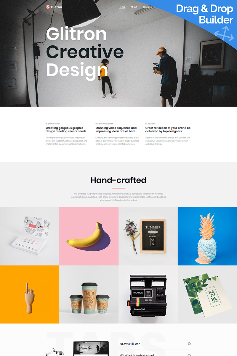 Moto CMS 3 мультишаблон для сайта - Giltron - Design Studio Moto CMS 3 Template, хорошо подойдет для сайтов Дизайн студия.