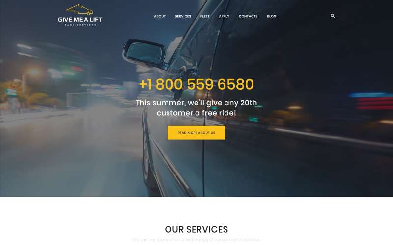 Give Me A Lift - подходит для сайтов Такси. WordPress отличный шаблон - Transportation & Taxi Services WordPress Theme.