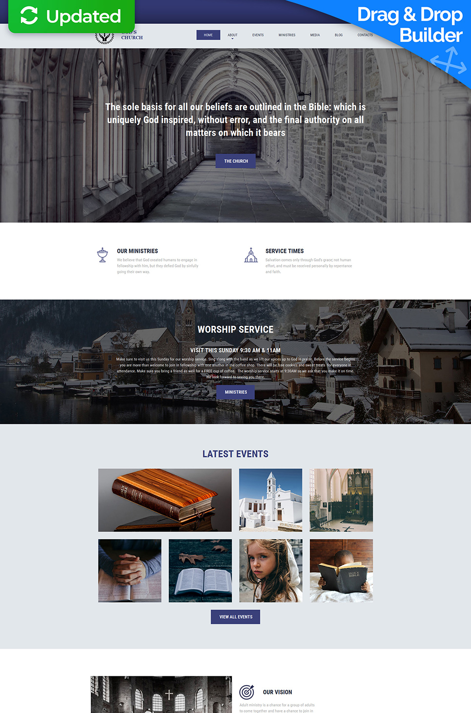 Moto CMS 3 эффектный шаблон - Christian - God's Church Moto CMS 3 Template, превосходно подходит для сайтов Христианство.