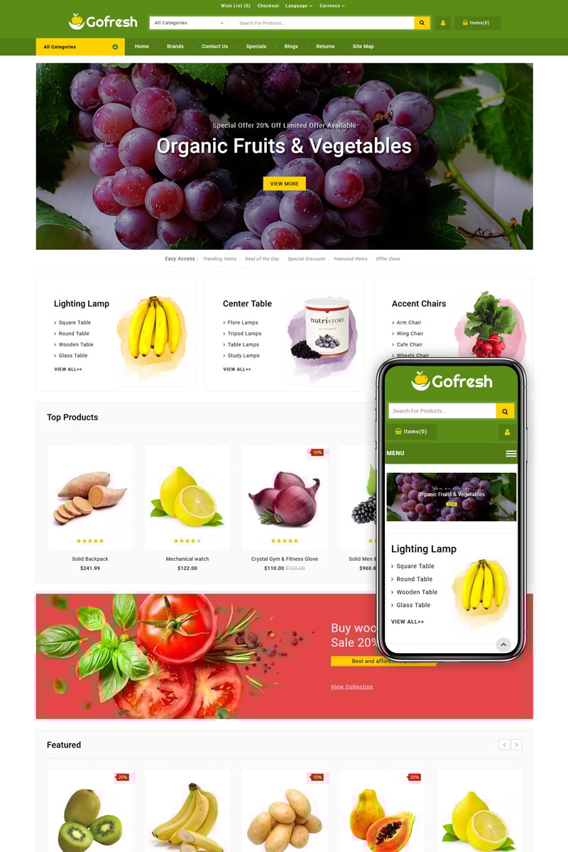 Gofresh - отлично подойдет для сайтов Животные. OpenCart интернет-магазин - Grocery Store OpenCart Template.