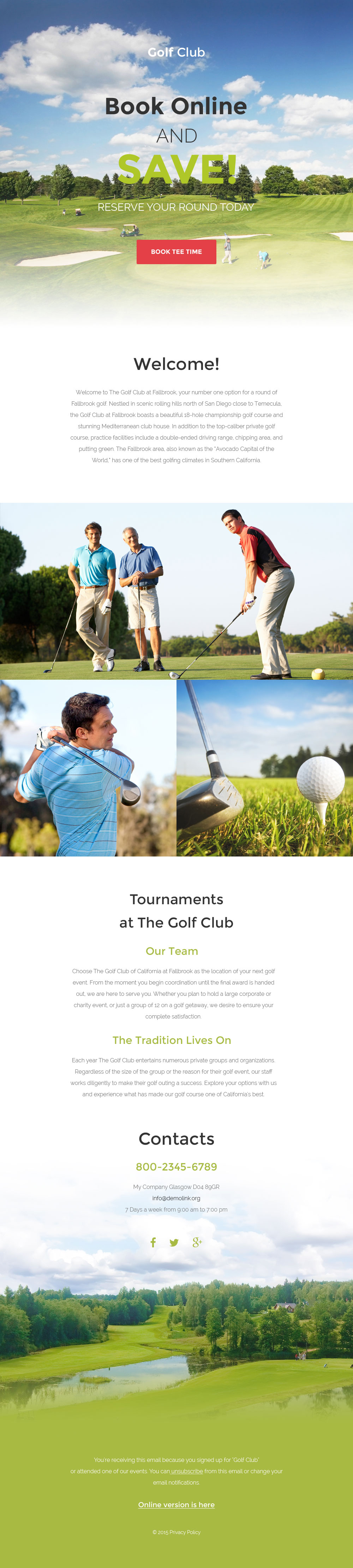 Скриншот - Гольф отзывчивый шаблон информационного бюллетеня - Golf - Email шаблон рассылки по почте