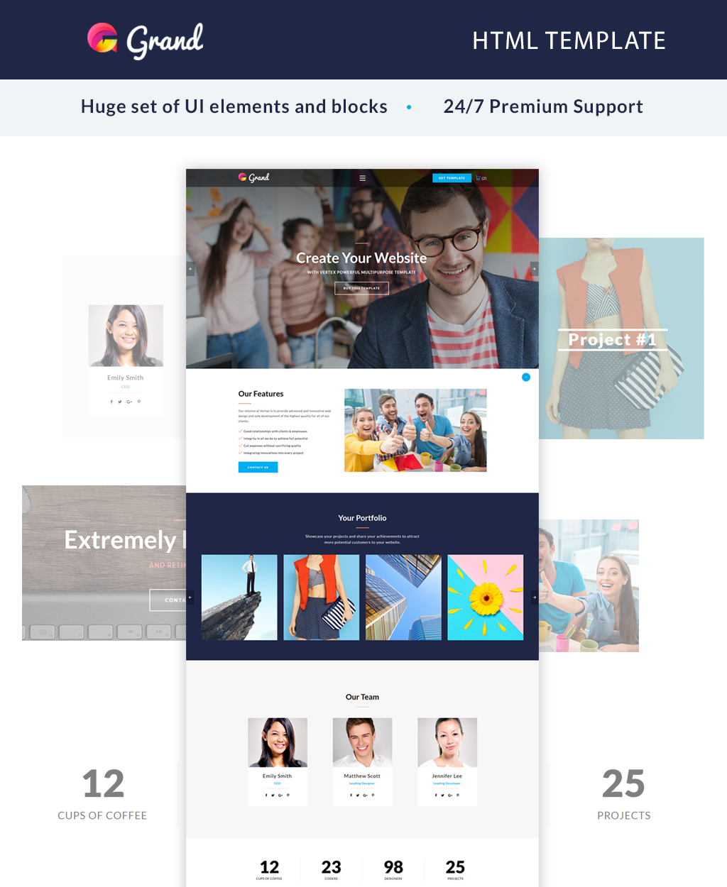 Лендинг шаблон одностраничника - Grand - Agency Landing Page Template, специально для сайтов на тему Маркетинговое агентство.
