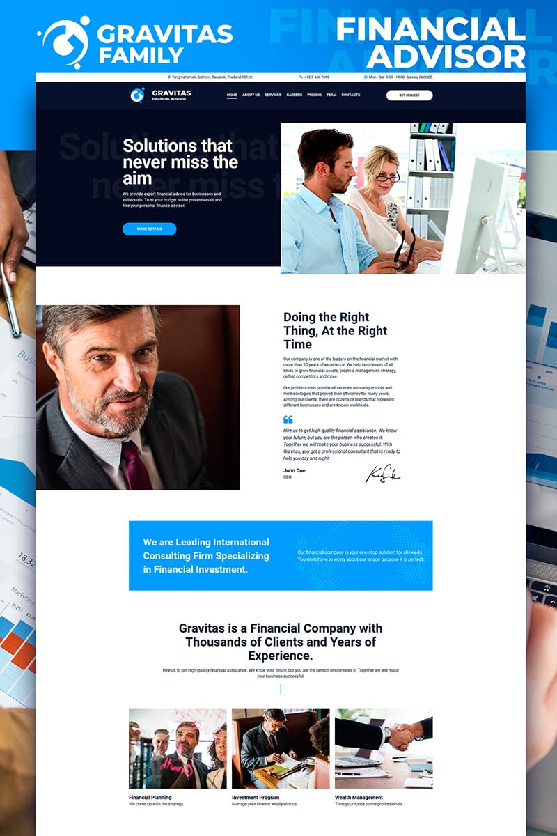Gravitas - специально для сайтов в области Финансовые консультации. Moto CMS 3 мультишаблон - Financial Advisor Moto CMS 3 Template.