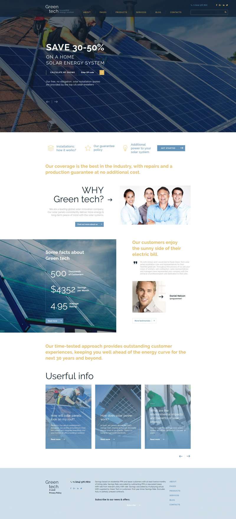 HTML5 минималистичный шаблон - Solar Energy - Green Tech Website Template, превосходно подойдет для сайтов в области Солнечная энергия.