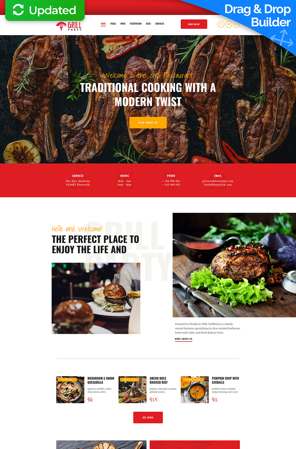 BBQ Restaurant - отлично подходит для сайтов в сфере Барбекю. Moto CMS 3 шаблон сайта - Grill Restaurant Premium Moto CMS 3 Template.
