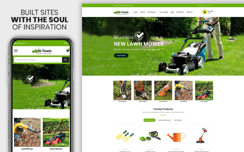 Gtools - хорошо подходит для сайтов Дизайн и интерьер. Shopify шаблон интернет-магазина - The Plant & Tools Accessories Premium Shopify Theme.