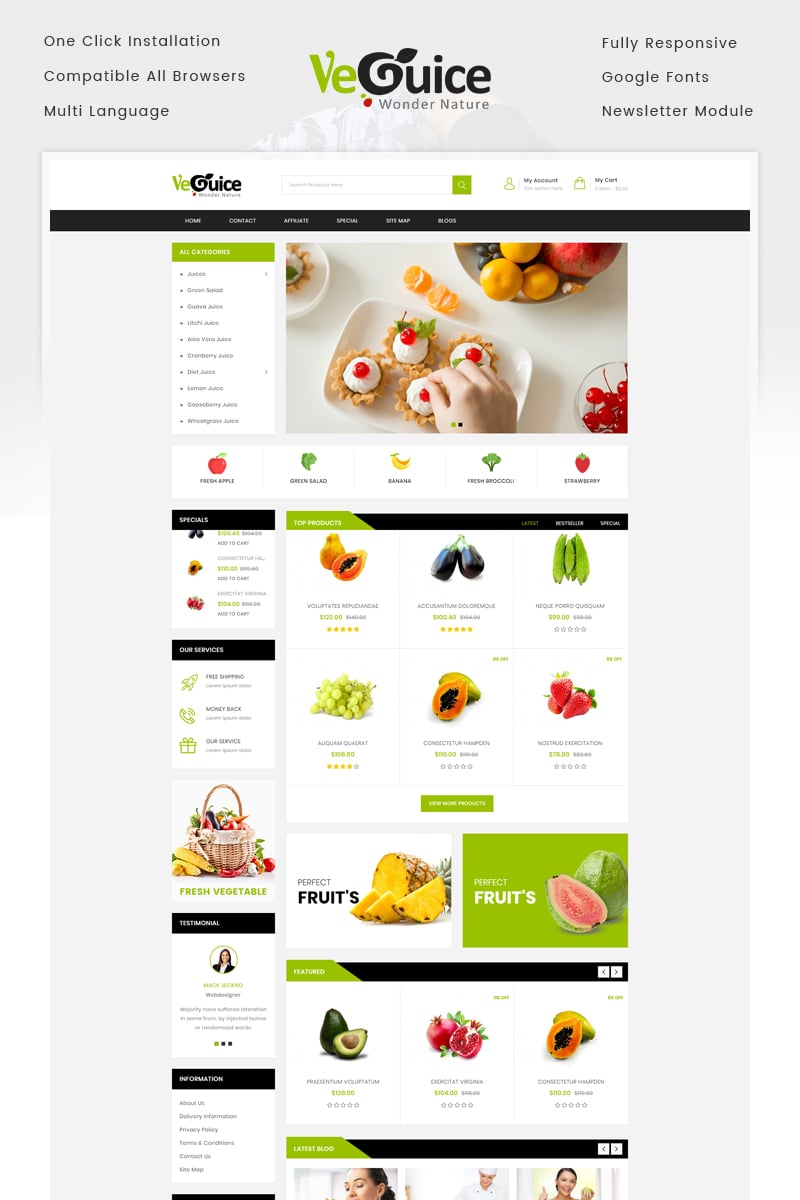 Grocery Store - идеально подходит для сайтов в сфере Продуктовый магазин. OpenCart интернет-магазин - Guice Grocery Store OpenCart Template.