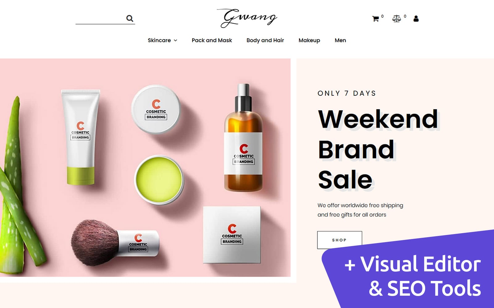 Gwang - идеально подходит для сайтов в категории Магазин косметики. MotoCMS Ecommerce шаблон интернет-магазина - Cosmetics Store MotoCMS Ecommerce Template.