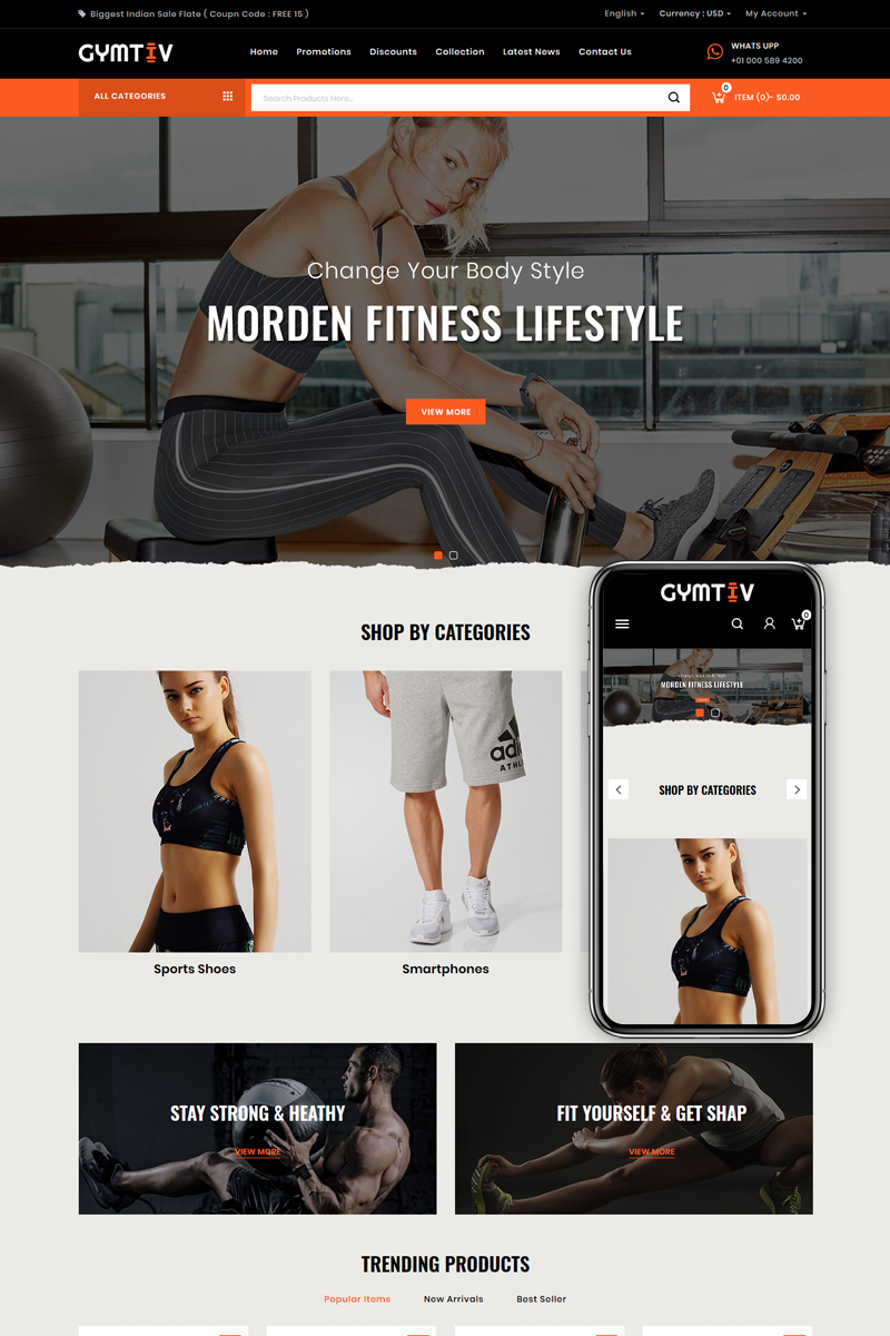 Тема фитнес магазина prestashop - Gymtiv - PrestaShop интернет-магазин для сайта
