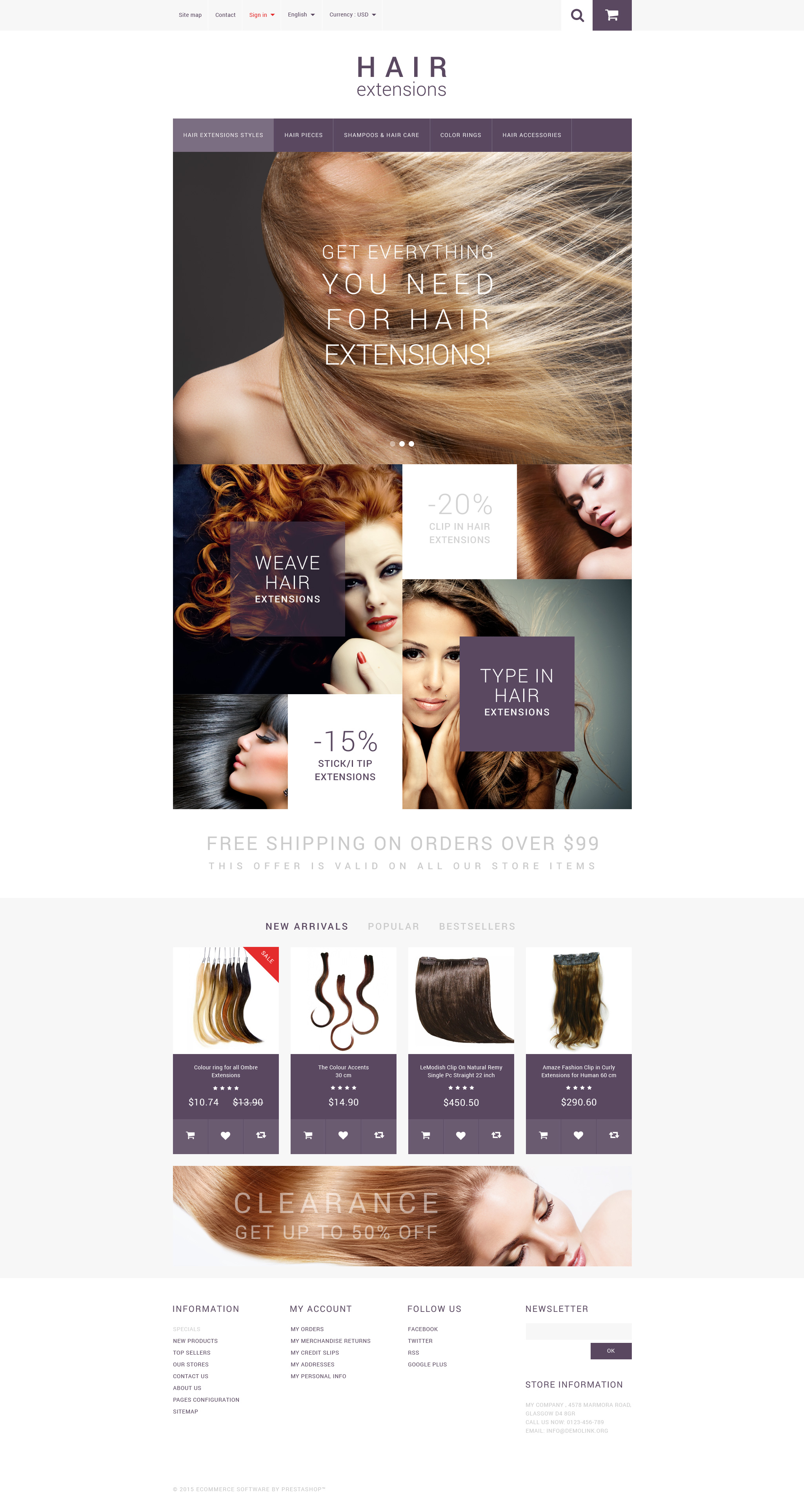 Наращивание волос тема prestashop - Hair Salon - PrestaShop шаблон для сайта интернет-магазина
