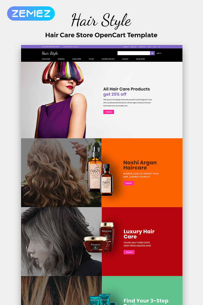 OpenCart шаблон интернет-магазина - Hair Style - Beauty Store Multipage Creative OpenCart Template, подходит для сайтов Парикмахерская.