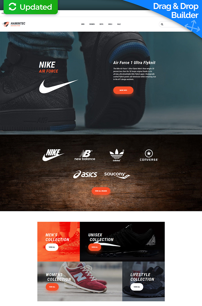 Hamintec - подойдет для сайтов в категории Магазин обуви. MotoCMS Ecommerce шаблон для интернет-магазина - Sneakers Store Responsive MotoCMS Ecommerce Template.